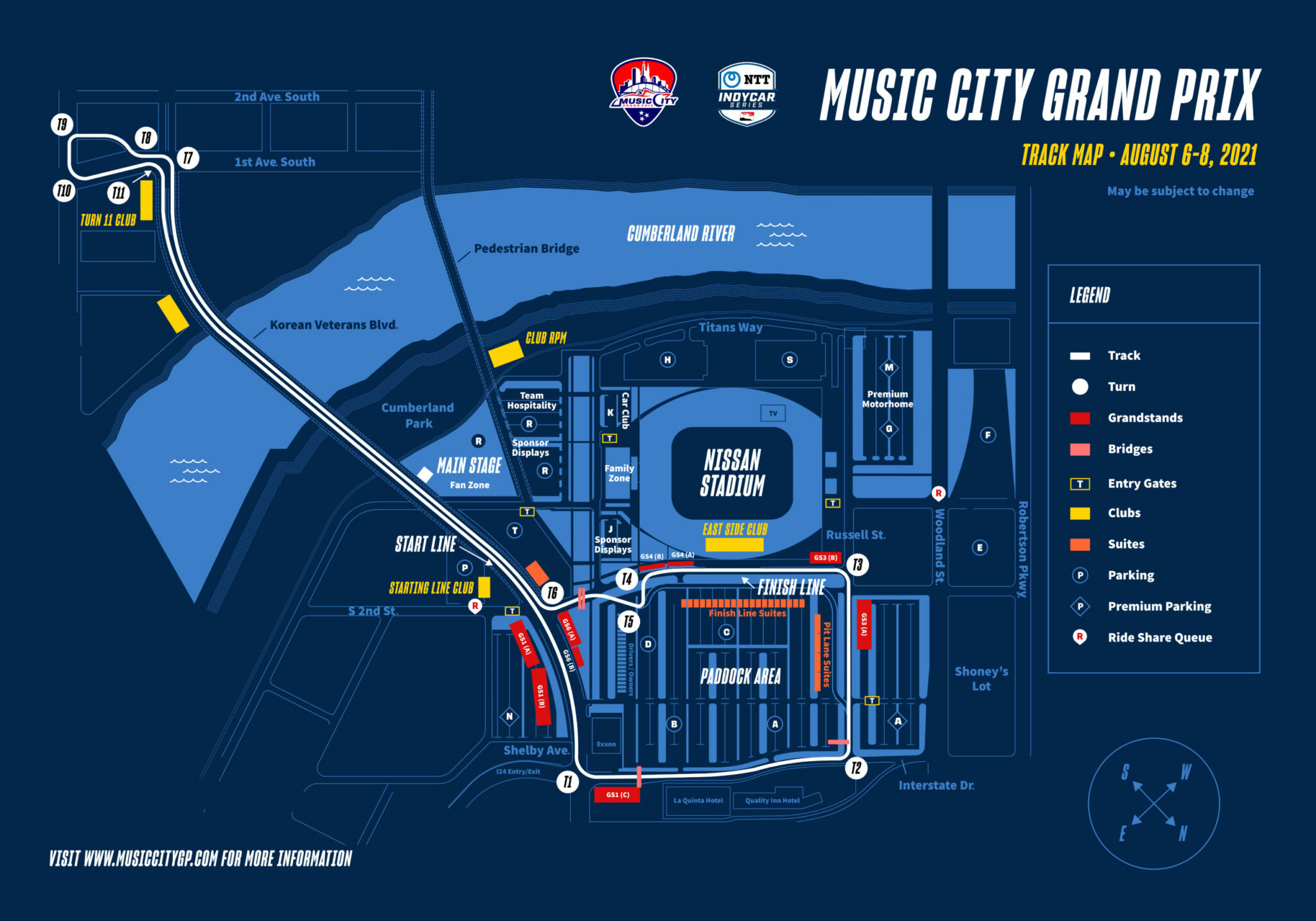 Dès 2021 l’IndyCar se rendra à Nashville pour une épreuve urbaine sur un tracé de 2,17 miles tracé non loin du Nissan Stadium qui servira de paddock.
