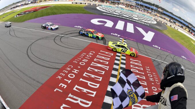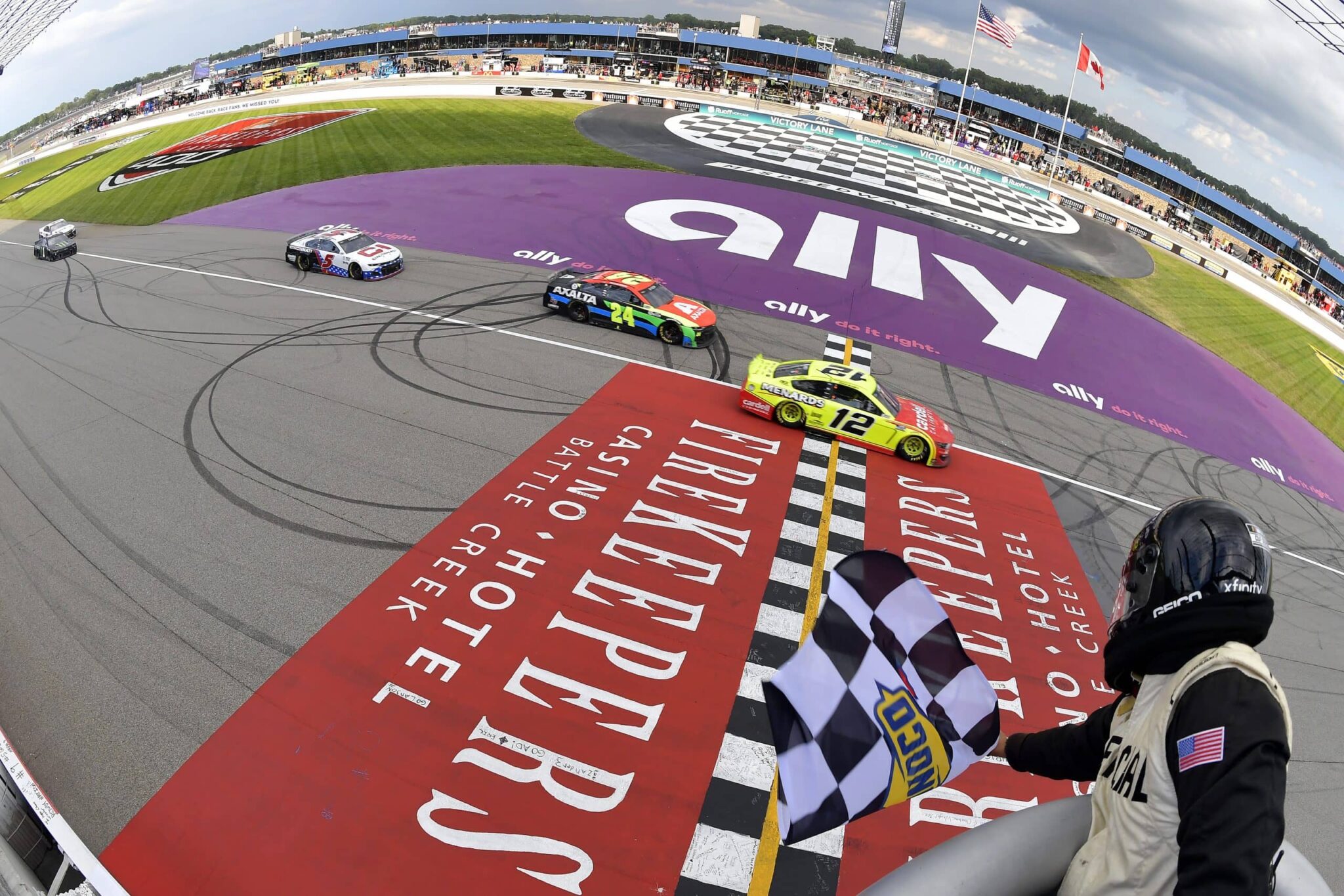 Ryan Blaney (Ford Mustang no 12) a gagné l’avant-dernière course de la saison régulière de la Coupe NASCAR à la piste du Michigan International Speedway, le FireKeepers Casino 400. Pour les amateurs de Chevrolet, ce fut une véritable insulte. Blaney a réussi à garder leurs vedettes William Byron (Camaro no 24) et surtout Kyle Larson (Camaro no 5) derrière lui suite à une relance à une dizaine de tours de la fin. Il faut dire qu’il a eu de l’aide de Kyle Busch (Camry no 18) qui l’a poussé vers l’avant à cette relance. Mais comment ce diable de pilote de l’équipe Penske a-t-il réussi à garder la tête devant tout ce monde sur cette impressionnante piste de 2,0 miles (3,22 km) est un véritable exploit !