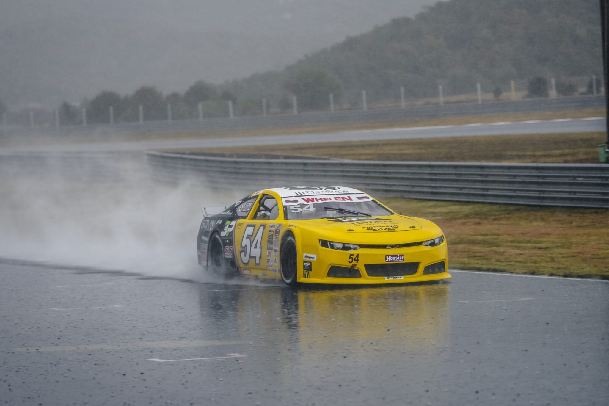 Pierluigi Veronesi a terminé à la septième place devant Leonardo Colavita, 16 ans, qui a fait forte impression sous la pluie alors qu’il pilotait la voiture EuroNASCAR pour la première fois dans ces conditions.