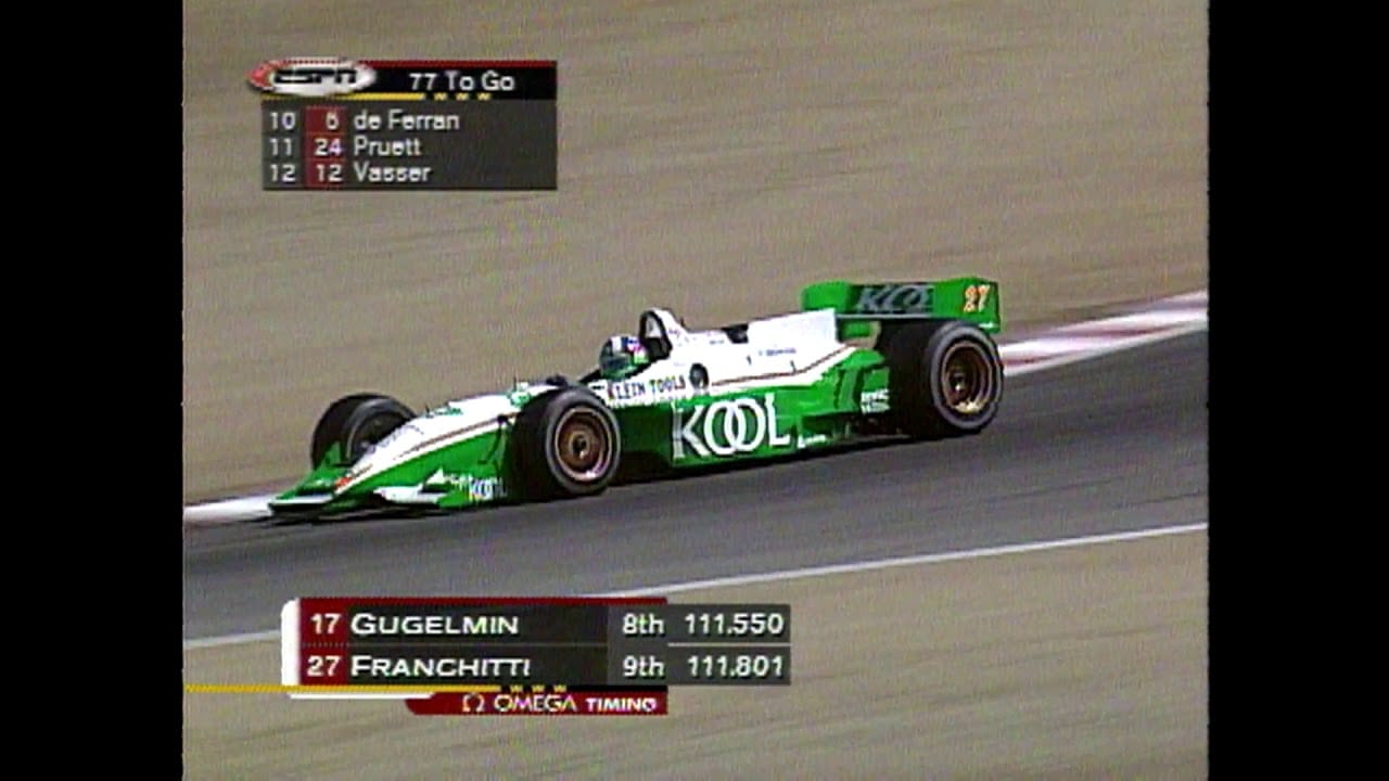Vainqueur à Vancouver de sa troisième course de suite, sa septième de la saison, Juan Pablo Montoya arrive à Laguna Seca en tant que leader du championnat. Le Colombien, qui pilote la Reynard n°4 propulsée par un moteur Honda, compte 23 points d’avance sur Dario Franchitti et 70 sur Michael Andretti.