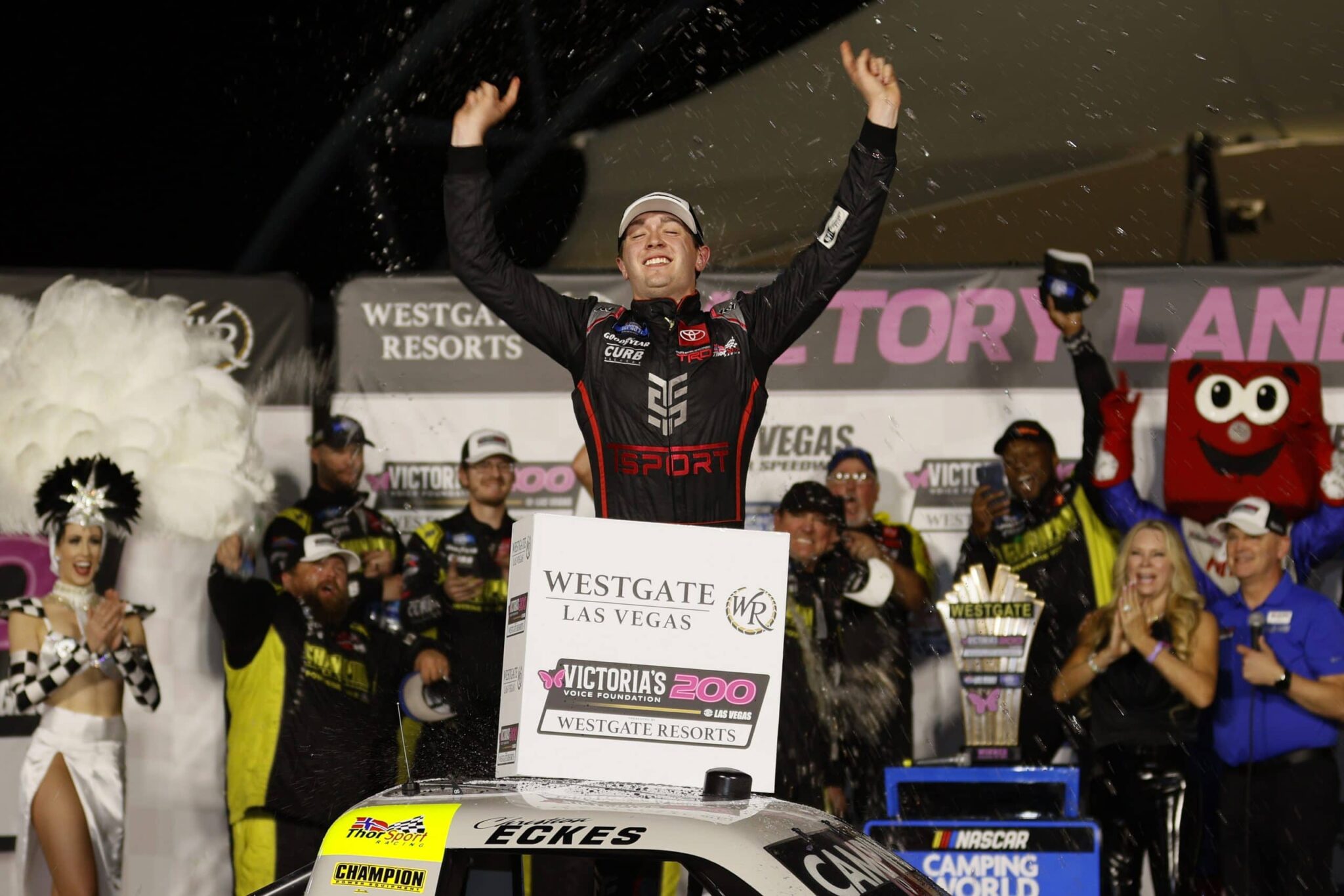 Pilote à temps partiel en 2021, Christian Eckes signe sa première victoire en carrière en NASCAR Camping World Truck Series sur le Las Vegas Motor Speedway. L’écurie ThorSport Racing réalise même un quadruplé.