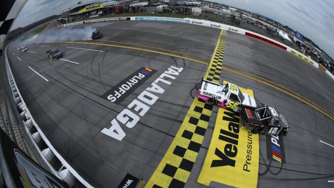 Talladega donne souvent lieu à une surprise à l’arrivée, Tate Fogleman remporte sa première victoire au terme d’une arrivée mouvementée.