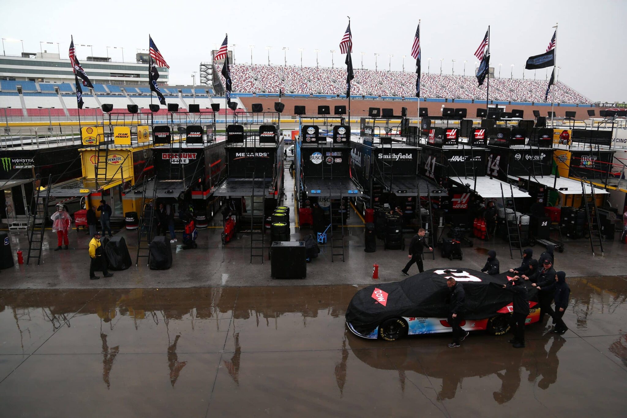 La course de Talladega aura tourné court ce dimanche en NASCAR Cup Series. En effet, la pluie a douché les espoirs des fans présents en tribune et les officiels de la NASCAR n’ont eu d’autre choix que de reporter la course de Talladega à lundi midi heure locale, 19 h 00 en France.