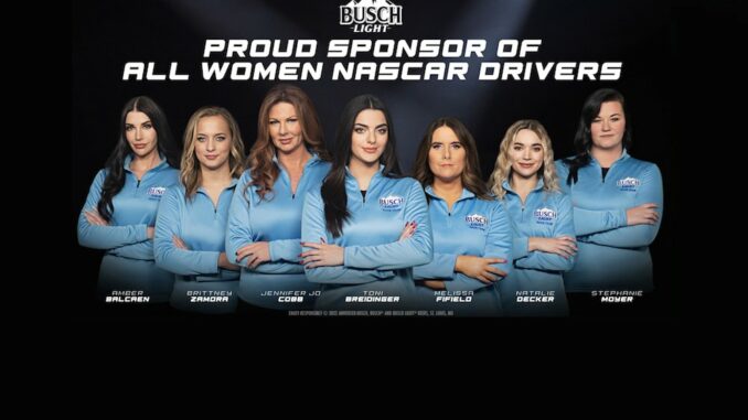 Toni Breidinger, Natalie Decker, Amber Balcaen, Jennifer Jo Cobb, Brittney Zamora, Stephanie Moyer et Melissa Fifield . Busch Light a déclaré qu’une partie de son engagement de 10 millions de dollars sera réservée au sponsoring permanent des femmes en NASCAR.