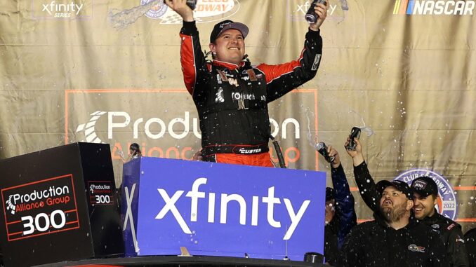 Trois prolongations, 12 neutralisations et plus de trois heures de course plus tard, Custer est toujours le seul ancien vainqueur dans le peloton à Fontana. Il s’est imposé devant Noah Gragson avec une avance 0.565 seconde sur la ligne d’arrivée.
