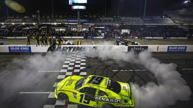Sur des pneus plus anciens, Brandon Jones a arraché la victoire à Ty Gibbs en Xfinity Series. Le pilote de la Toyota n°19 s’est imposé malgré l’ultra domination du petit fils de son propriétaire vendredi soir sur le Martinsville Speedway.