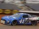 Ben Rhodes devait rentrer aux stands à l’issue du premier segment de la Pinty’s Truck Race on Dirt sur le Bristol Motor Speedway Dirt, mais une erreur de communication le laisse en piste. Qu’importe, le champion en titre de la troisième division de la NASCAR ne s’en laisse pas compter et parvient à rester dans le jeu pour la gagne.