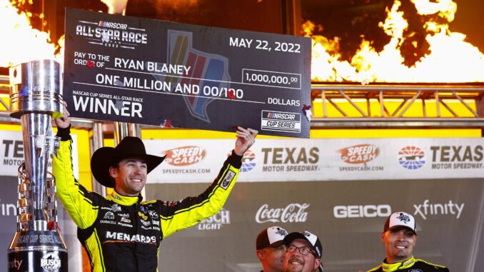 Victorieux de la NASCAR All-Star Race sur le Texas Motor Speedway, Ryan Blaney remporte le million de dollars promis au vainqueur.