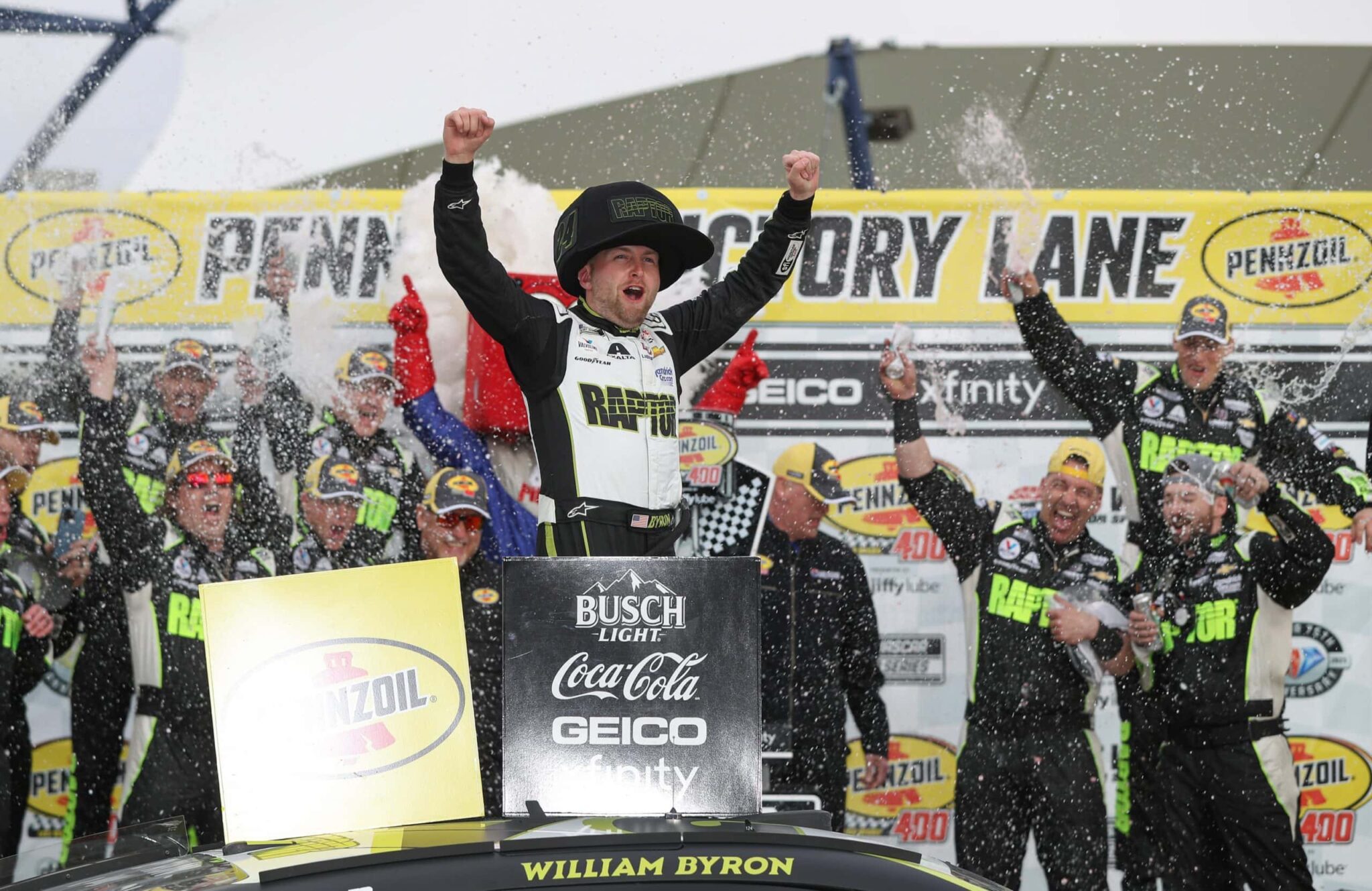 William Byron s’impose devant Kyle Larson et Alex Bowman pour le troisième triplé de l’histoire de la Hendrick Motorsports en NASCAR Cup Series. Bubba Wallace prend la quatrième place devant Christopher Bell. Austin Cindric, Martin Truex Jr, Justin Haley, Kevin Harvick et Daniel Suárez complètent le top 10.