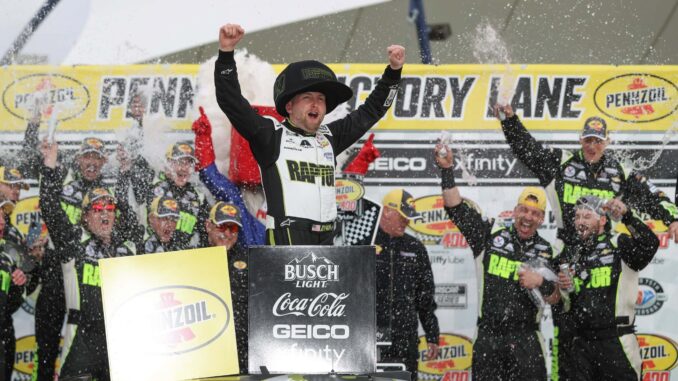 Le champion 2021 de la discipline a pris le meilleur sur Denny Hamlin juste avant l’ultime arrêt de la course sous drapeau vert et n’a plus jamais été inquiété, jusqu’à l’accident d’Aric Almirola à quatre tours du terme original de la course, qui conduit à une fin sous régime d’Overtime.