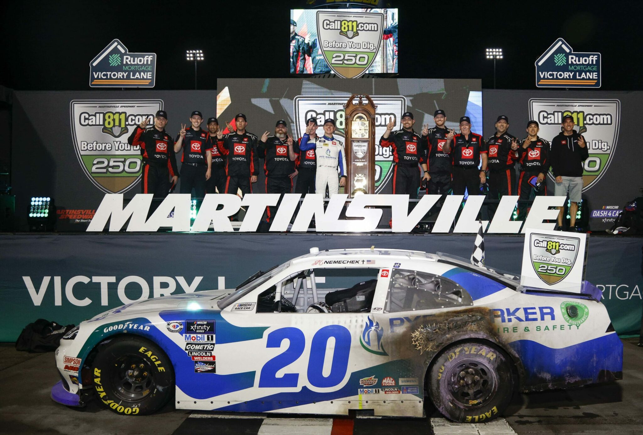 Avec 198 tours menés sur les 250, John Hunter Nemechek n’a laissé que des miettes à ses rivaux à l’occasion des Call811.com Before You Dig 250 sur le Martinsville Speedway en NASCAR XFINITY Series. Après avoir pris le meilleur sur Sammy Smith à 32 tours du drapeau à damier, John Hunter Nemechek est aller chercher la victoire avec 1,518 seconde d’avance sur son coéquipier. Troisième, Cole Custer, n’a pu empêcher le doublé de la Joe Gibbs Racing.