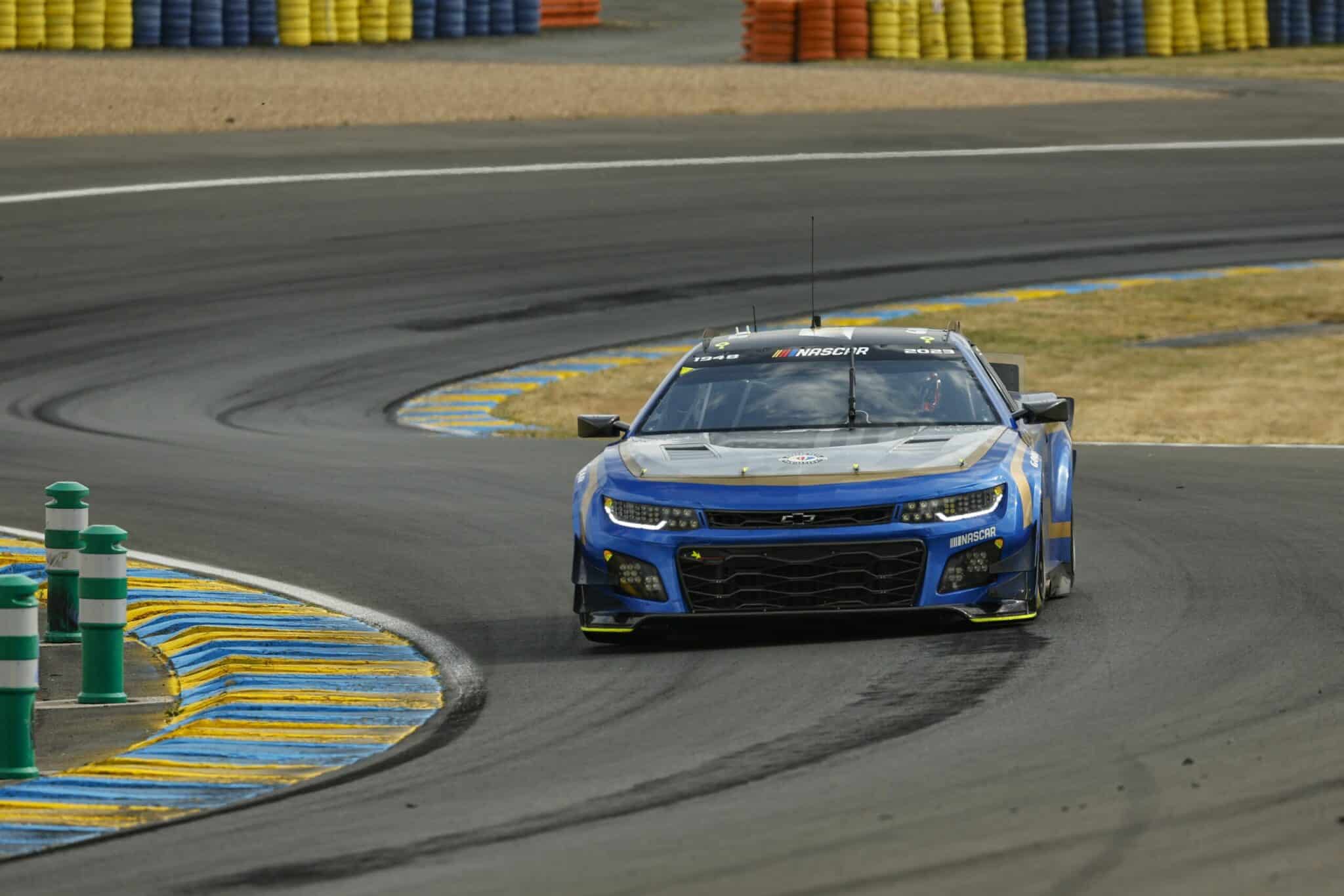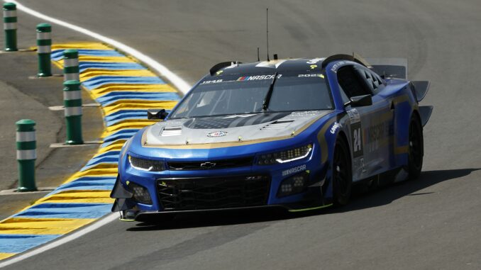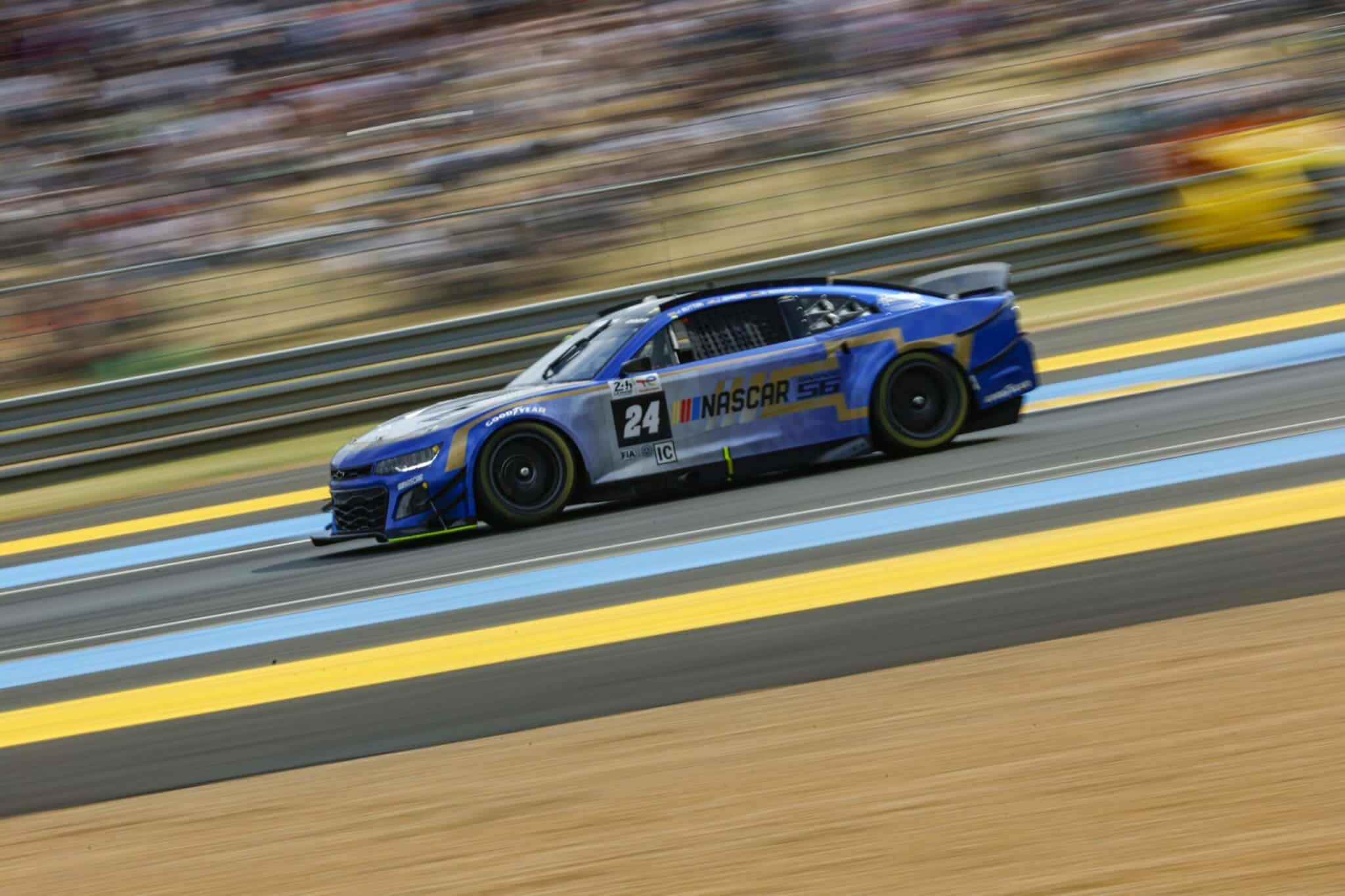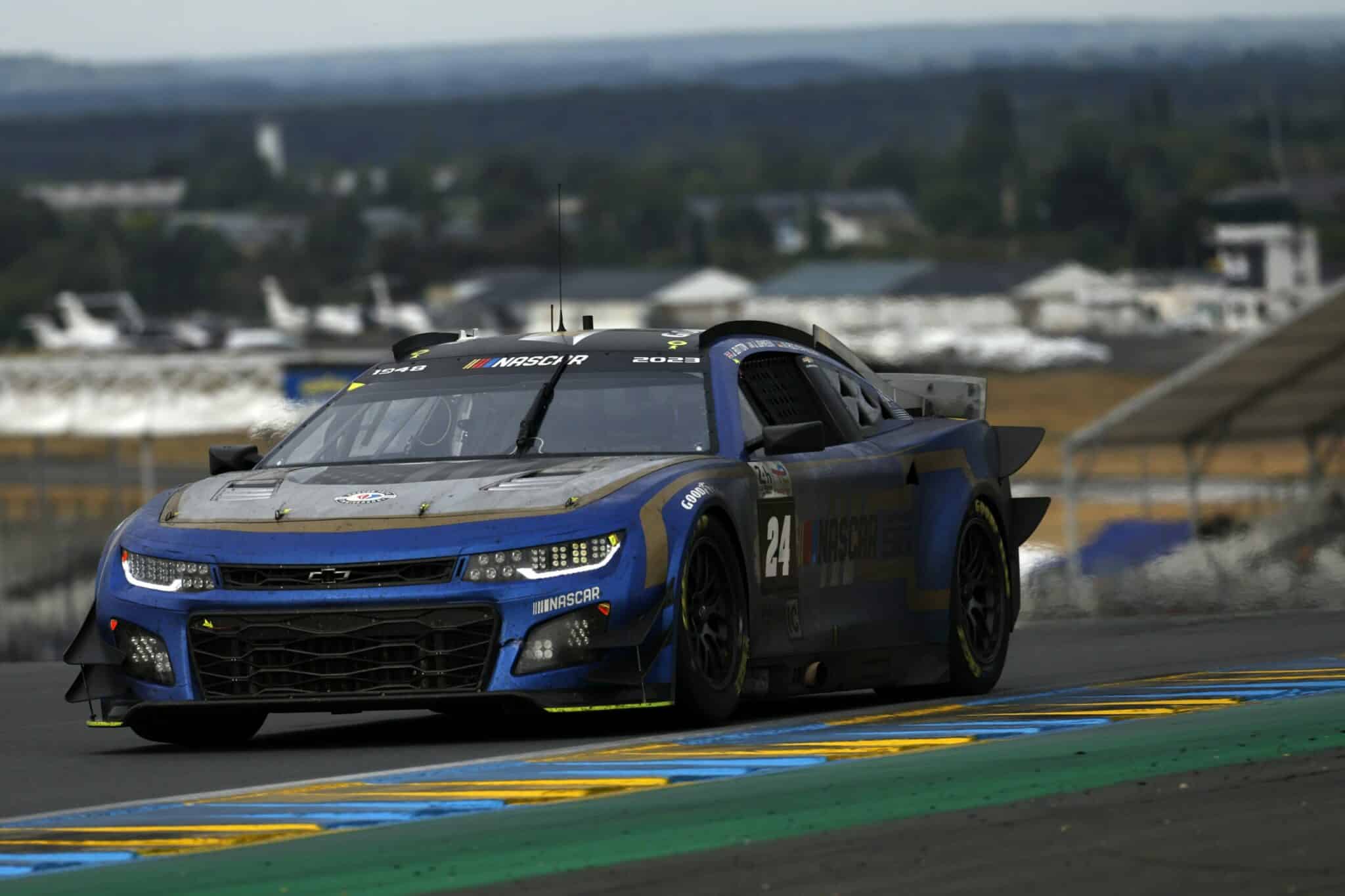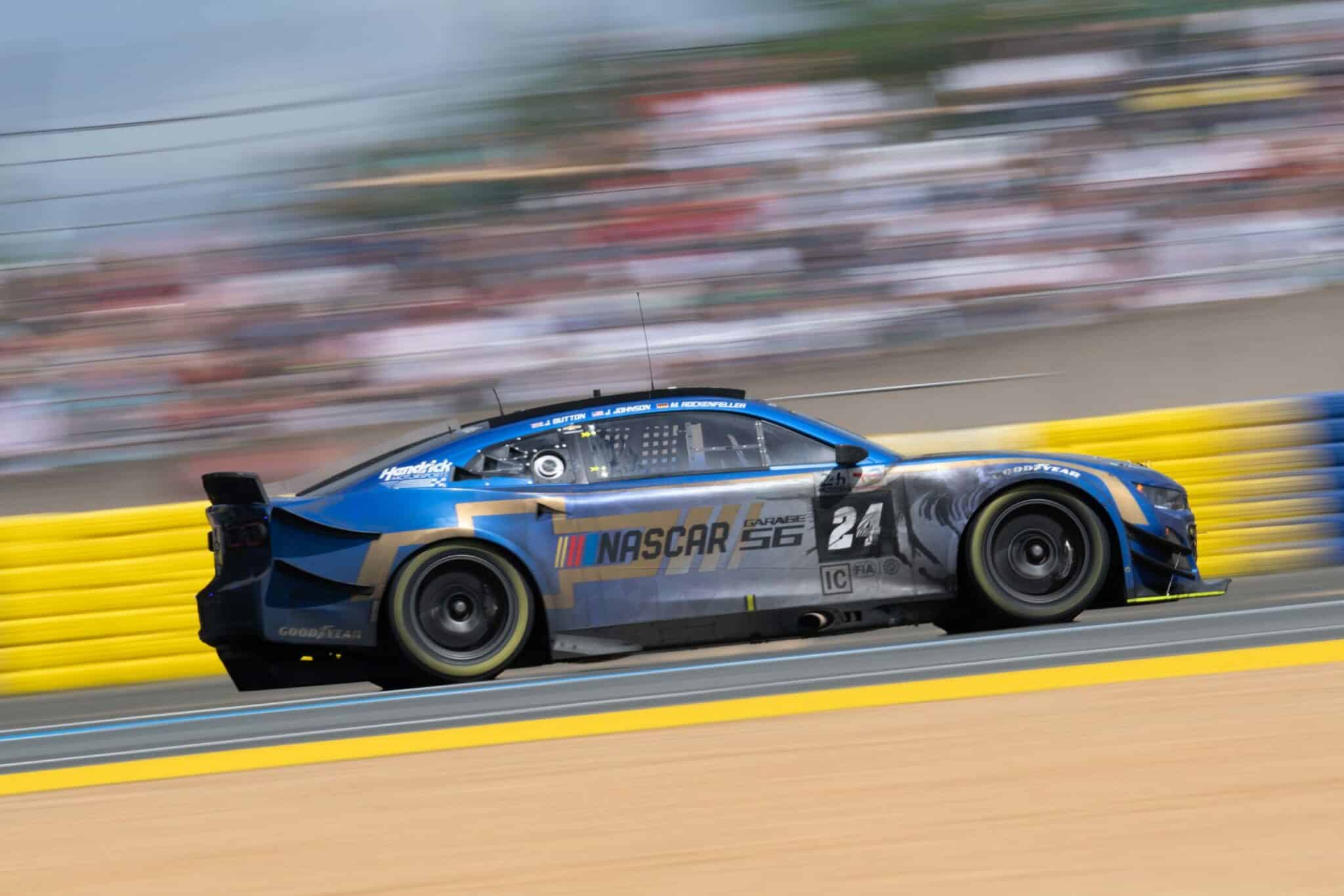 LE MANS, FRANCE – JUNE 07: The #24 NASCAR Next Gen Chevrolet ZL1 driven by Jimmie Johnson, Jenson Button and Mike Rockenfeller drives during practice for the 100th anniversary of the 24 Hours of Le Mans at the Circuit de la Sarthe June 04, 2023 in Le Mans, France. (Photo by Chris Graythen/Getty Images)