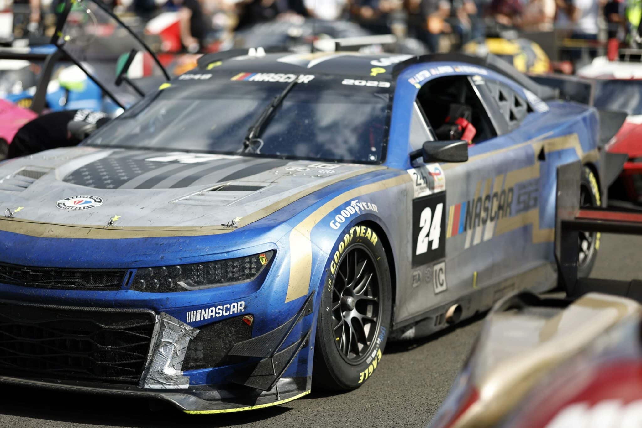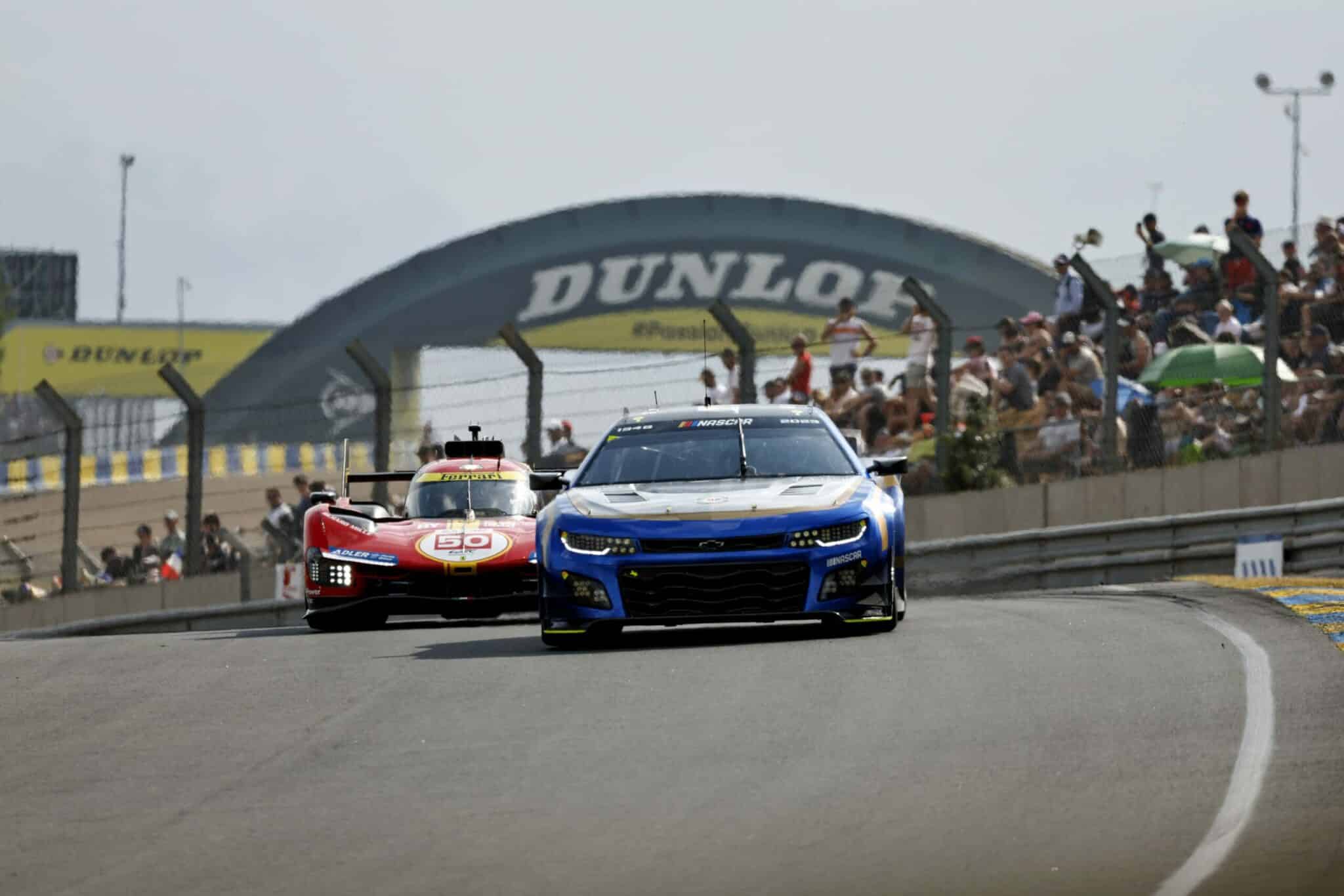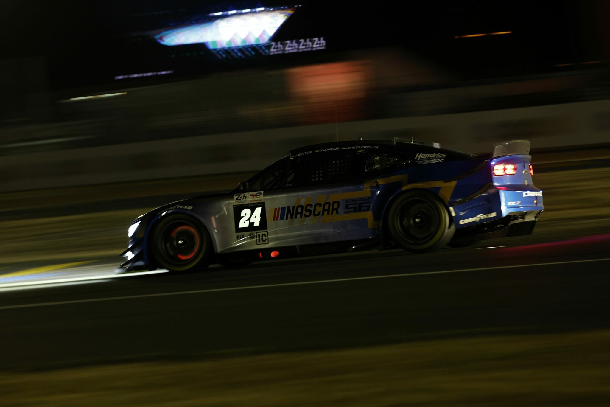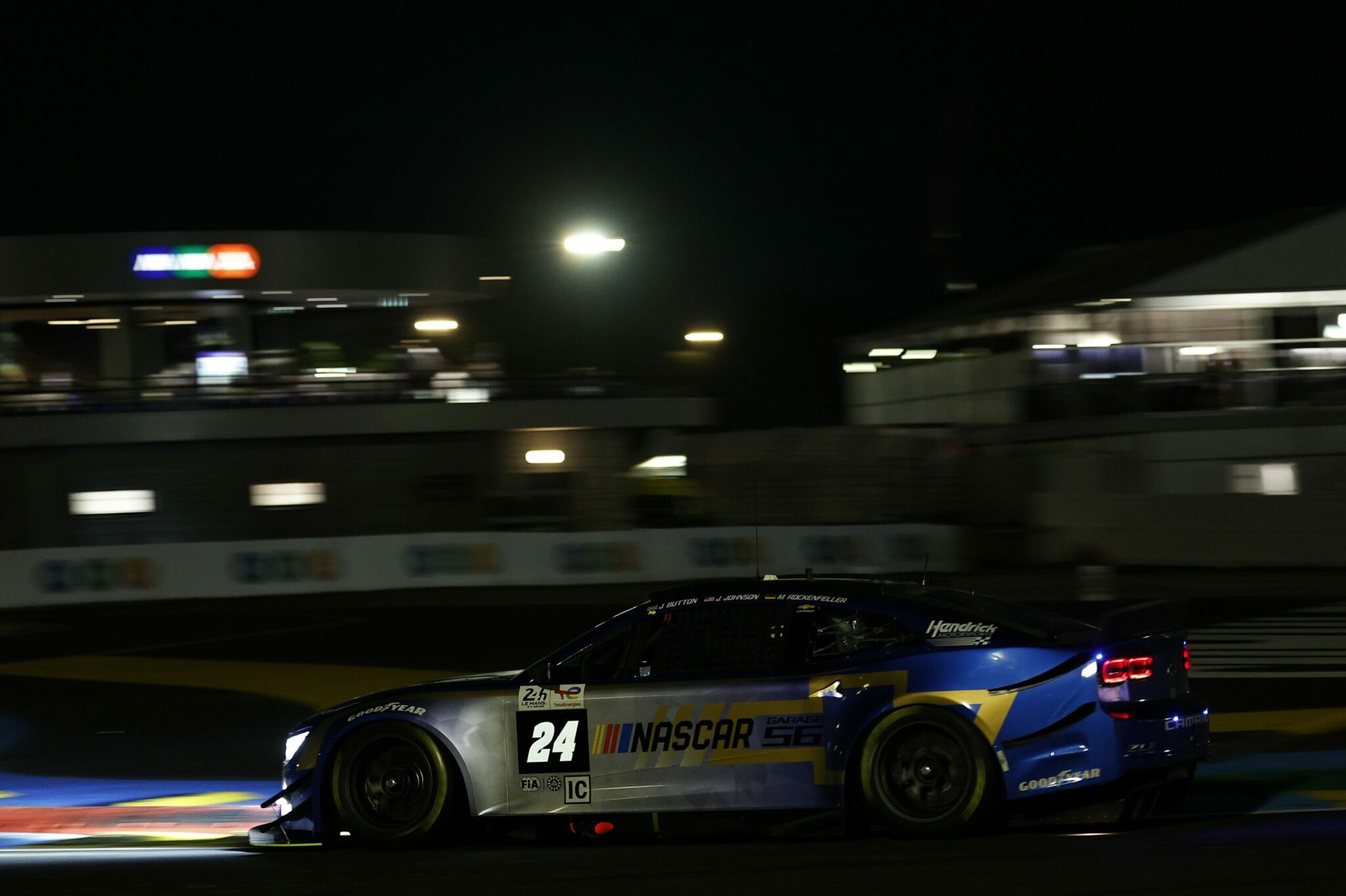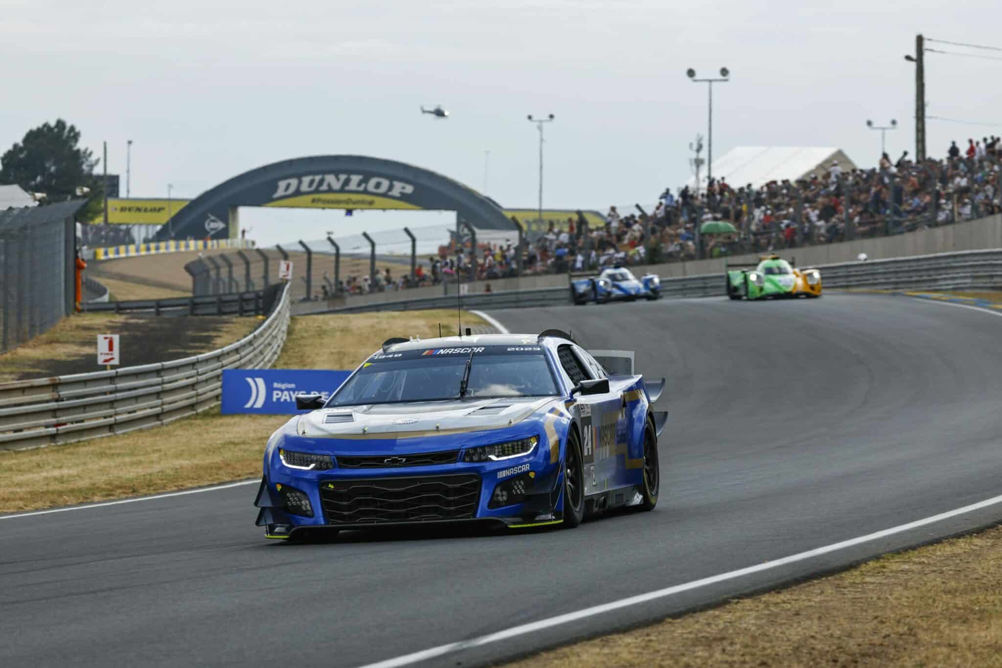 LE MANS, FRANCE – JUNE 07: The #24 NASCAR Next Gen Chevrolet ZL1 driven by Jimmie Johnson, Jenson Button and Mike Rockenfeller drives during practice for the 100th anniversary of the 24 Hours of Le Mans at the Circuit de la Sarthe June 04, 2023 in Le Mans, France. (Photo by Chris Graythen/Getty Images)