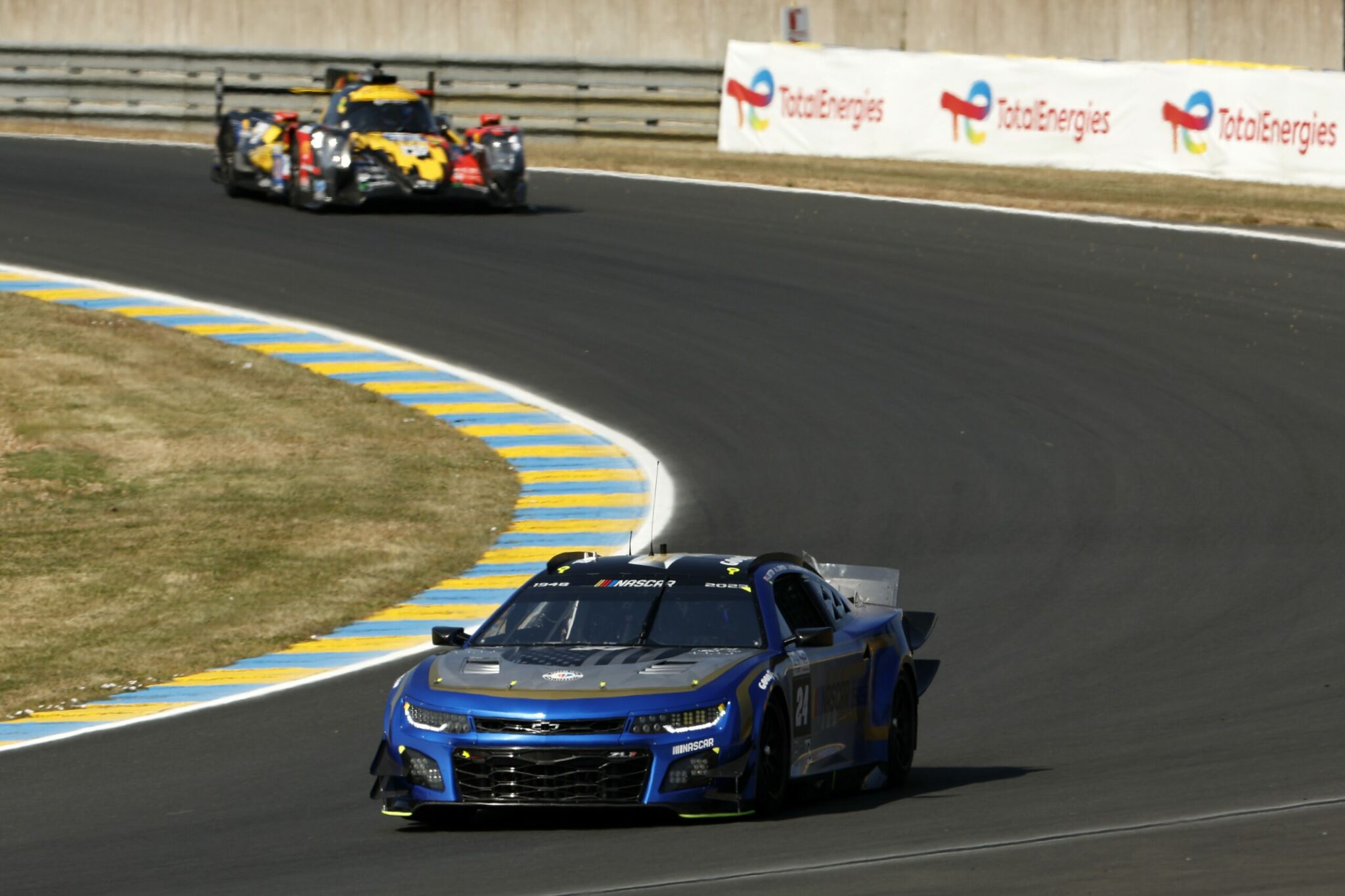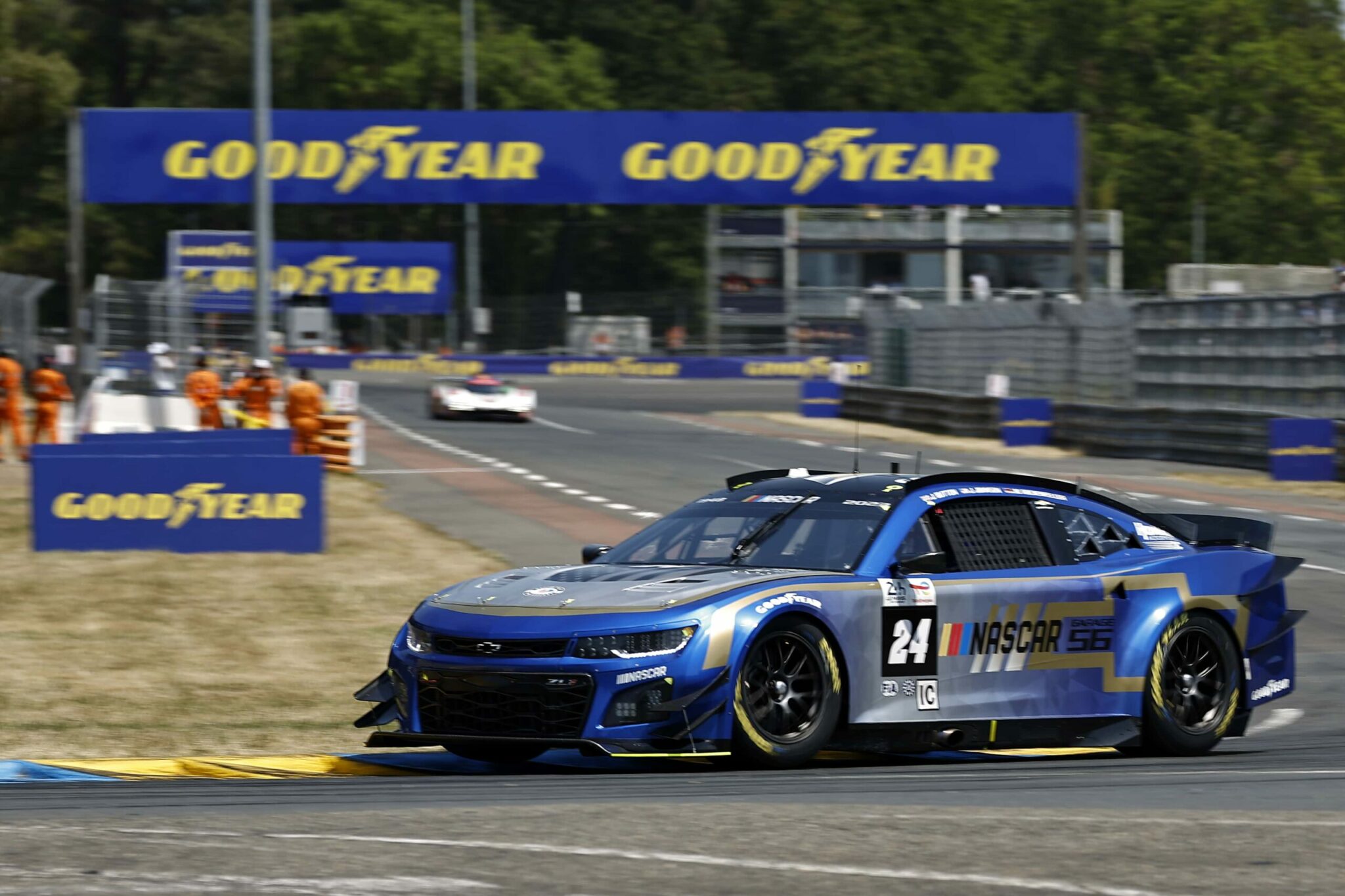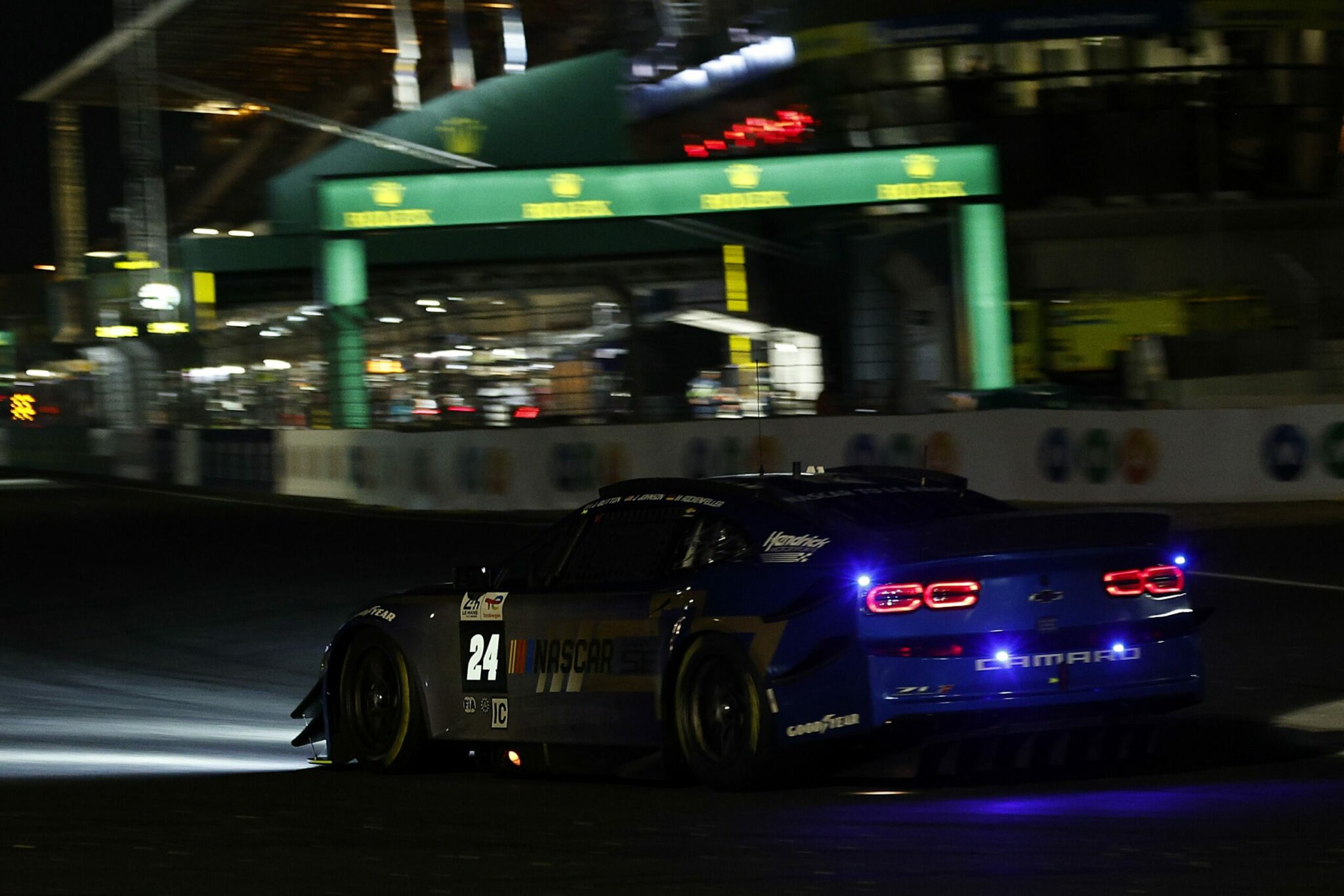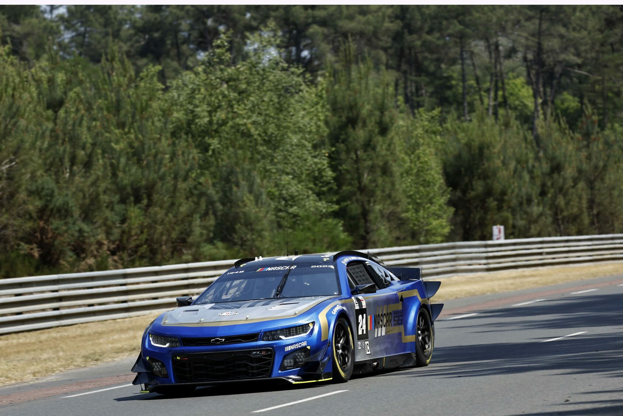 LE MANS, FRANCE – JUNE 07: The #24 NASCAR Next Gen Chevrolet ZL1 driven by Jimmie Johnson, Jenson Button and Mike Rockenfeller drives during practice for the 100th anniversary of the 24 Hours of Le Mans at the Circuit de la Sarthe June 04, 2023 in Le Mans, France. (Photo by Chris Graythen/Getty Images)