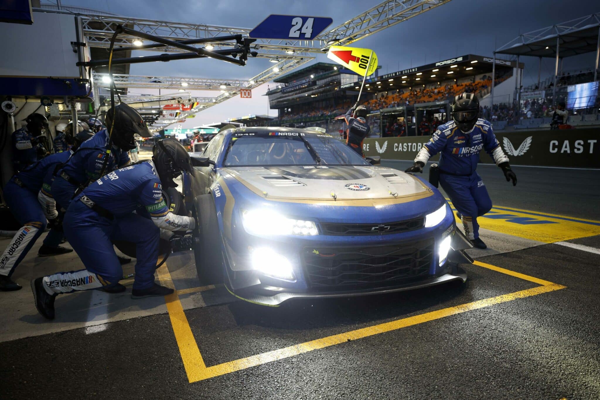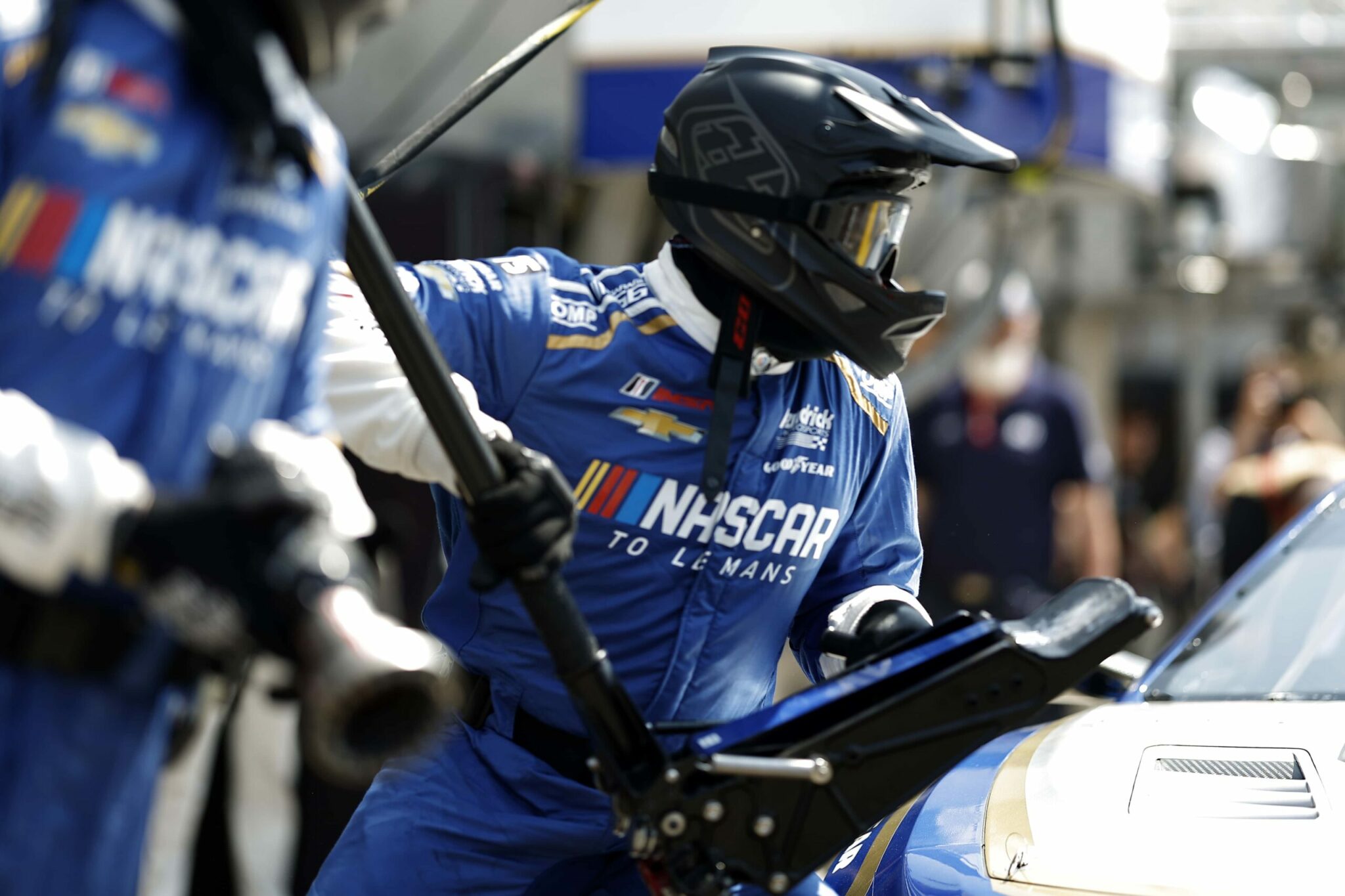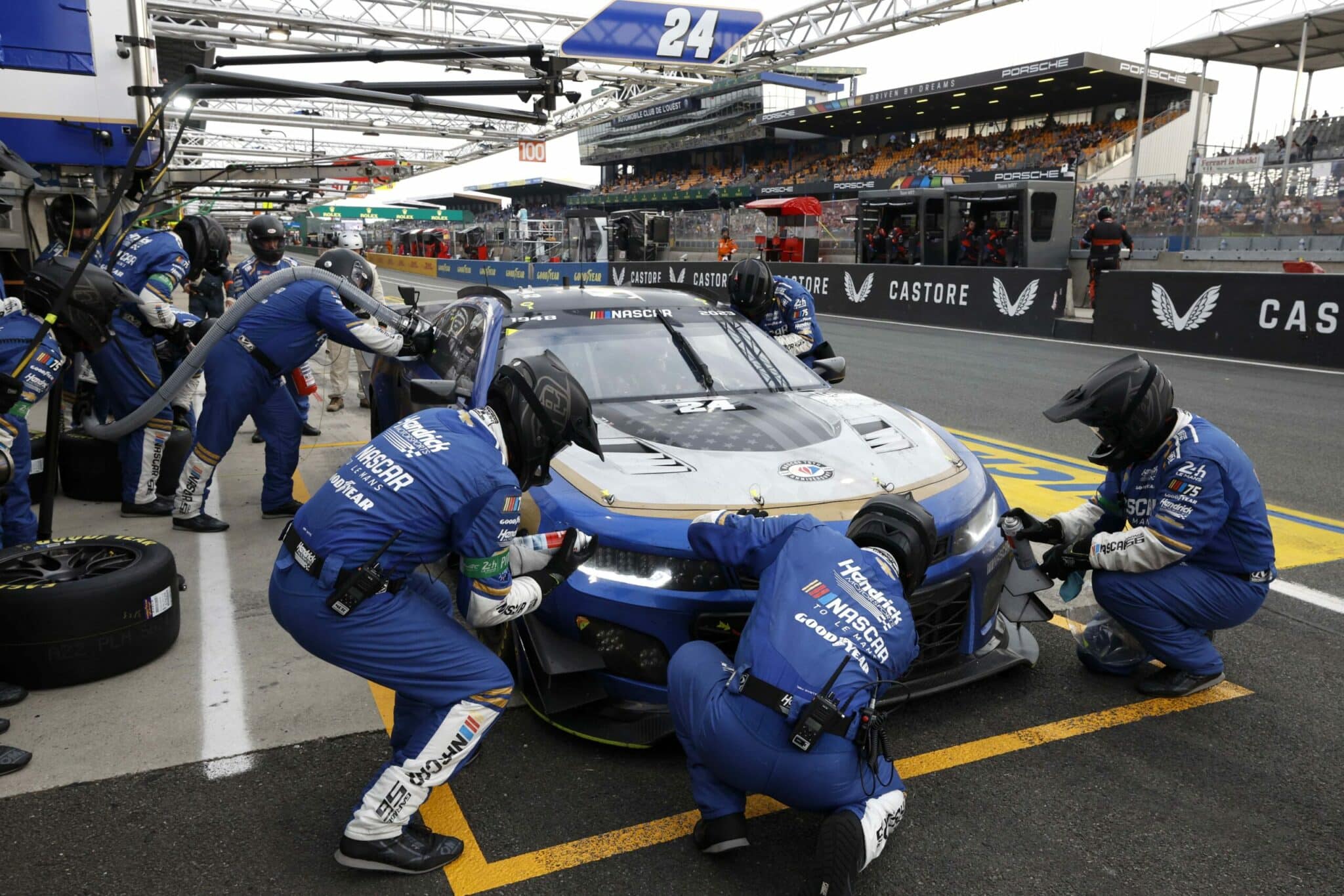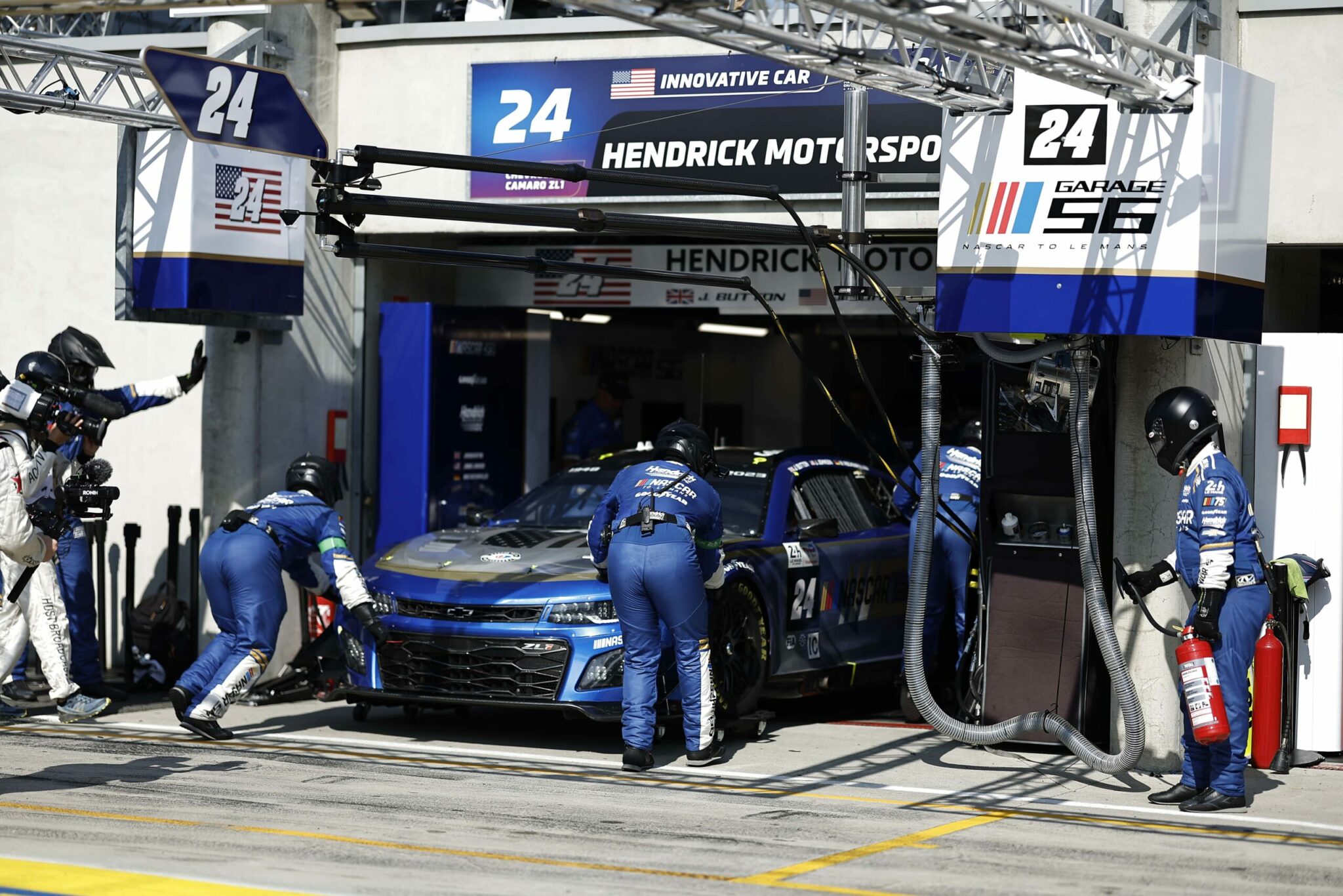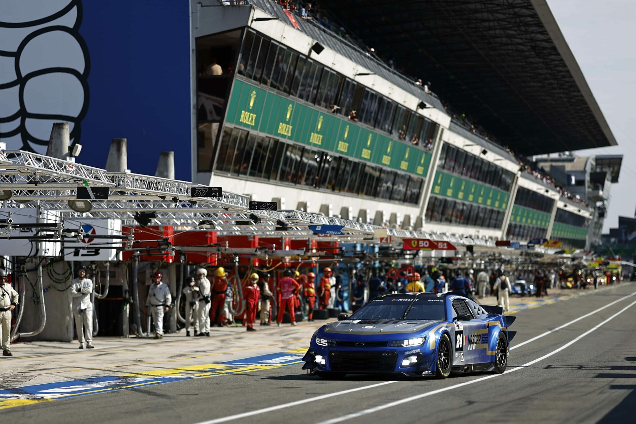 LE MANS, FRANCE – JUNE 07: The #24 NASCAR Next Gen Chevrolet ZL1 driven by Jimmie Johnson, Jenson Button and Mike Rockenfeller drives during practice for the 100th anniversary of the 24 Hours of Le Mans at the Circuit de la Sarthe June 04, 2023 in Le Mans, France. (Photo by Chris Graythen/Getty Images)