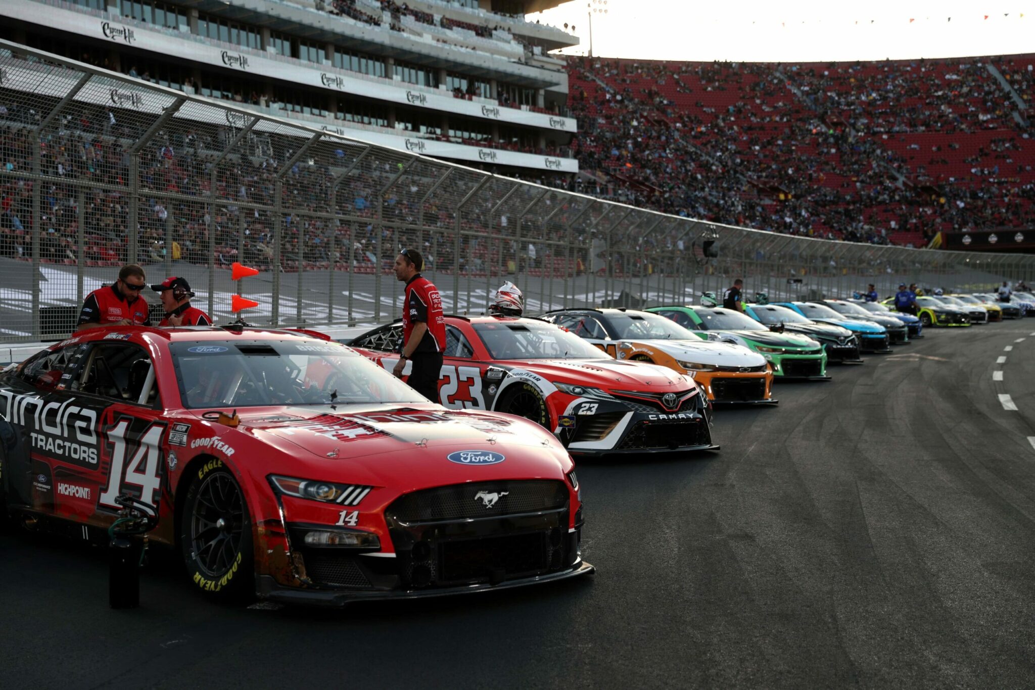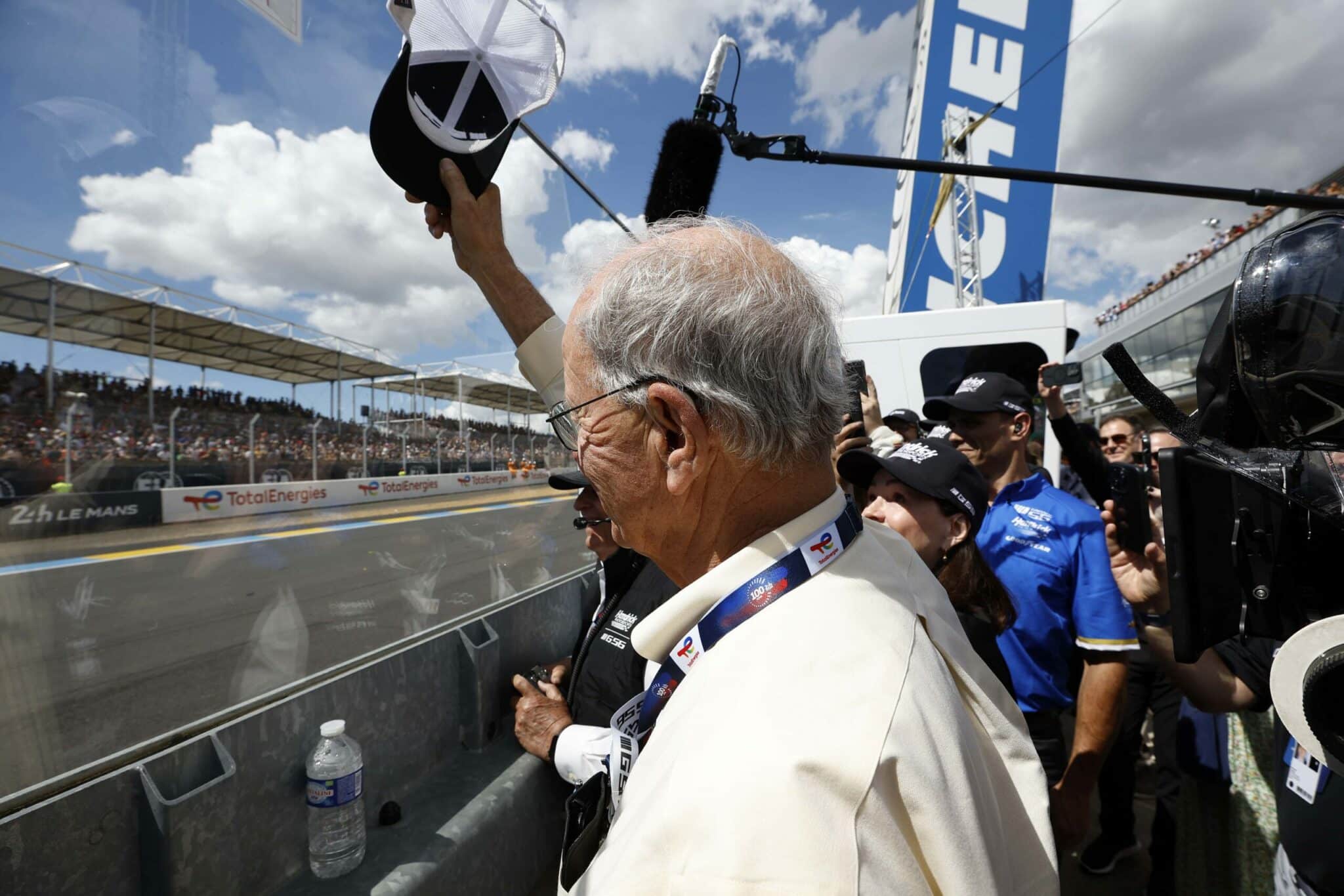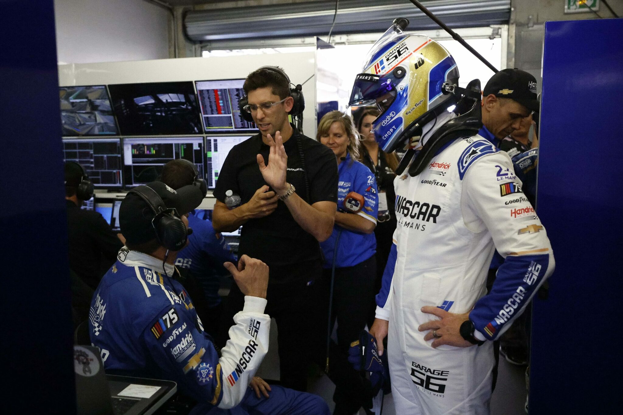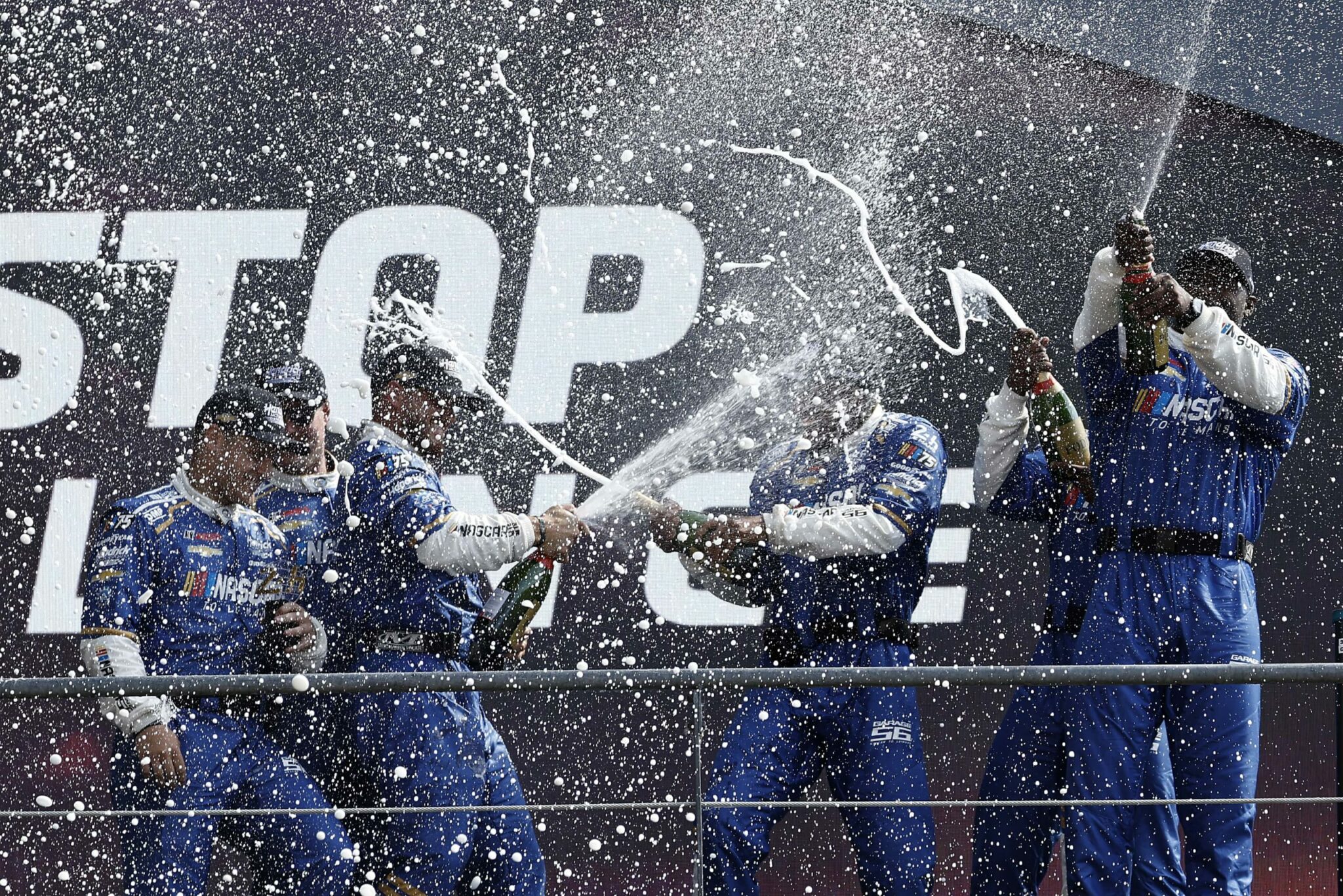 LE MANS, FRANCE – JUNE 06: The pit crew for the NASCAR Next Gen Chevrolet ZL1 celebrate after winning the pit stop challenge prior to the 100th anniversary of the 24 Hours of Le Mans at the Circuit de la Sarthe June 5, 2023 in Le Mans, France. on June 06, 2023 in Le Mans, France. (Photo by Chris Graythen/Getty Images)