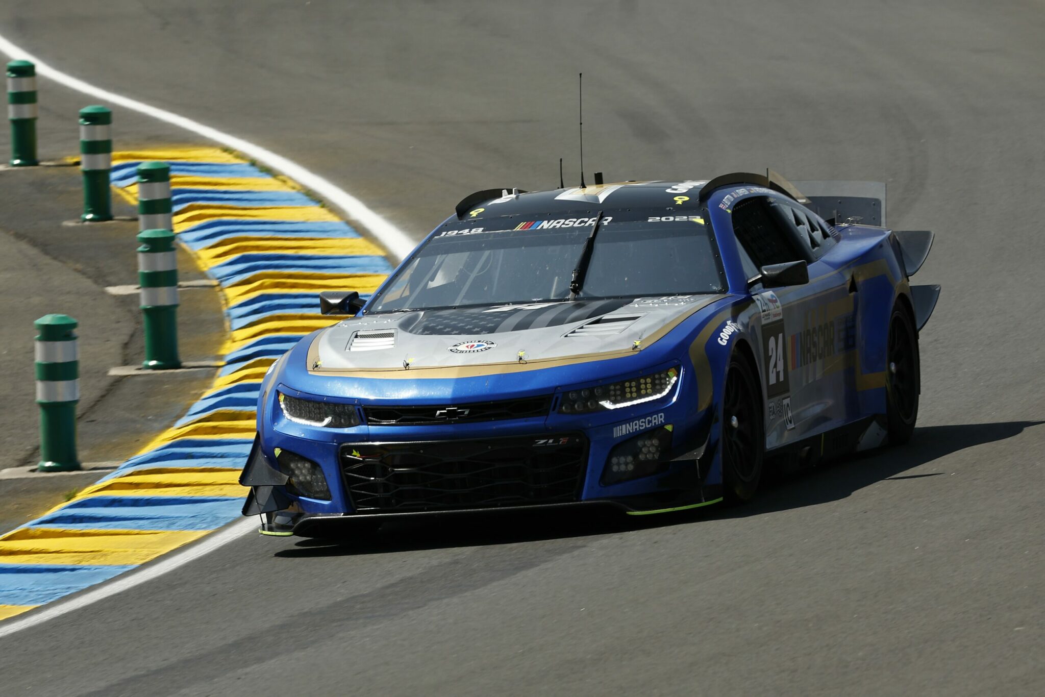 LE MANS, FRANCE – JUNE 07: The #24 NASCAR Next Gen Chevrolet ZL1 driven by Jimmie Johnson, Jenson Button and Mike Rockenfeller drives during practice for the 100th anniversary of the 24 Hours of Le Mans at the Circuit de la Sarthe June 04, 2023 in Le Mans, France. (Photo by Chris Graythen/Getty Images)