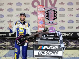 Bien inspiré d’aller chercher une victoire pour se qualifier pour les playoffs, Alex Bowman part à la faute dans le virage n°2 sous la pression de Denny Hamlin pour la troisième place à onze tours du drapeau à damier.