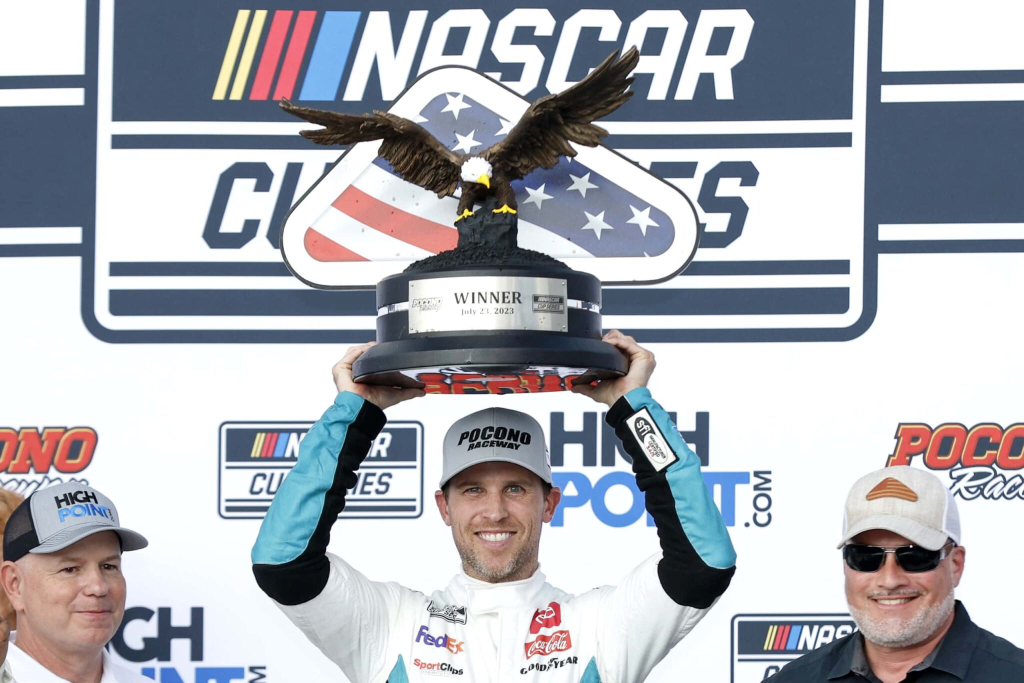 Denny Hamlin s’en souviendra de sa cinquantième victoire en NASCAR Cup Series acquise sous les huées du public du Pocono Raceway.