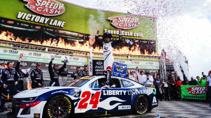 Sur le Texas Motor Speedway, William Byron est sorti du bois sur la dernière relance et s’est échappé pour décrocher sa sixième victoire de la saison en NASCAR Cup Series. Ce succès est également le trois-centième en NASCAR Cup Series pour la Hendrick Motorsports. Grâce à cette victoire, William Byronn assure sa qualification pour le Round of 8.
