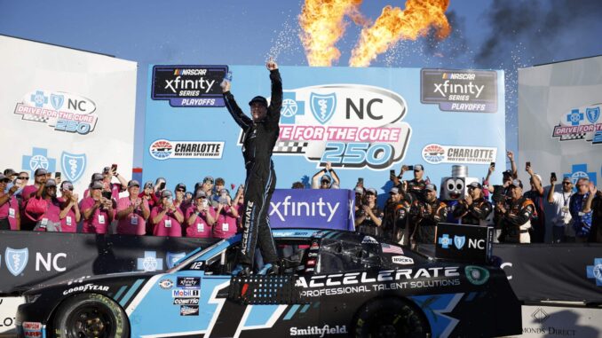 Contraint à la victoire pour obtenir sa qualification au Round of 8 Sam Mayer a décroché la victoire en NASCAR XFINITY Series à Charlotte sur le circuit routier de Charlotte.