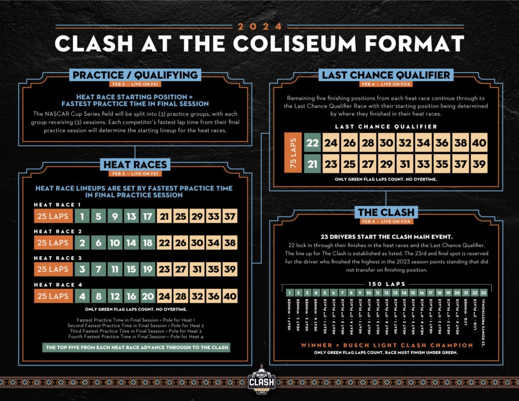 À un peu plus de deux semaines du Clash la NASCAR a révélé le format de l’édition 2024 de la première épreuve hors-championnat de la saison, dans le stade des Jeux olympiques de Los Angeles.