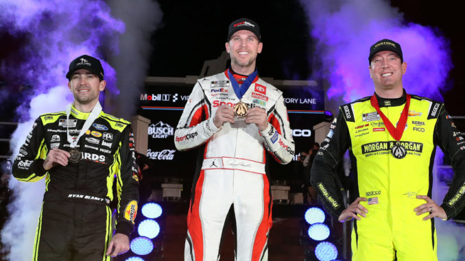 Au Los Angeles Memorial Coliseum Denny Hamlin remporte le Busch Light Clash pour la première sortie de la Toyota Camry XSE en NASCAR Cup Series. Le pilote de la Joe Gibbs Racing a eu les nerfs solides dans les derniers instants de la course pour résister à ses rivaux.