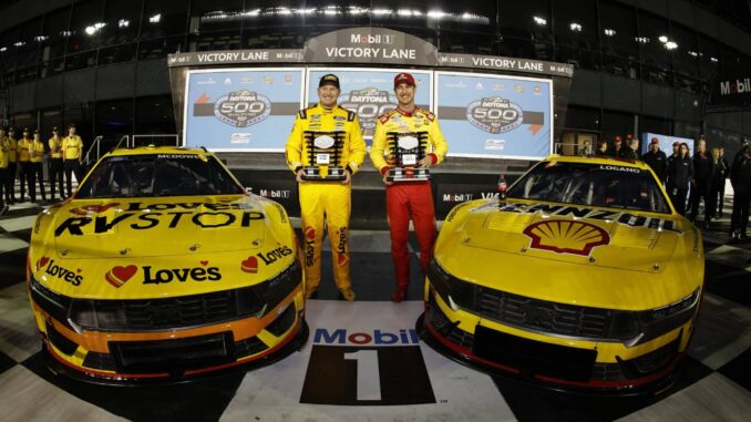 Alors que la Hendrick Motorsports et ses Chevrolet étaient attendues ce sont les Ford Mustang Dark Horse de Joey Logano et Michael McDowell qui sécurisent la première ligne des Daytona 500 à l’occasion des qualifications.