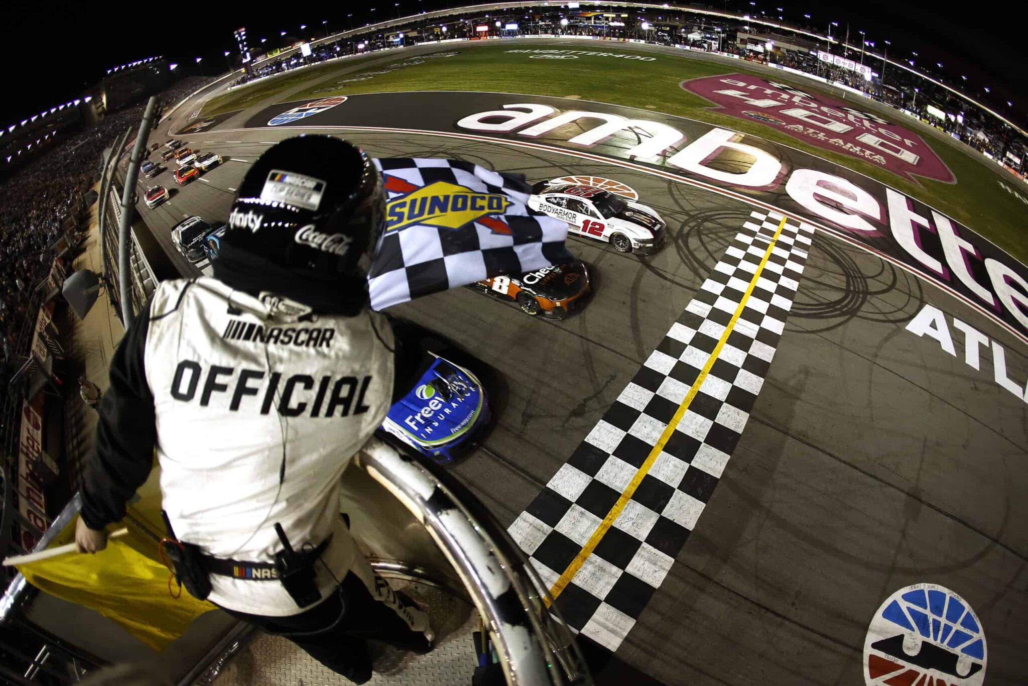 Revivez les derniers instants de la course d’Atlanta en NASCAR Cup Series avec un final halletant entre Daniel Suárez, Ryan Blaney et Kyle Busch.