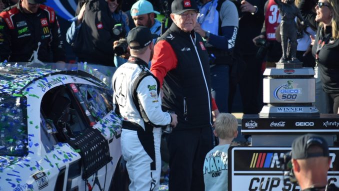 C’est incroyable. Tout le monde dans l’équipe a énormément travaillé. C’était le chaos. C’est Talladega. Je dois féliciter Ty Gibbs et Martin Truex Jr. Ils m’ont poussé et donné tout ce qu’ils avaient. Sans leur aide, je ne gagnais pas.