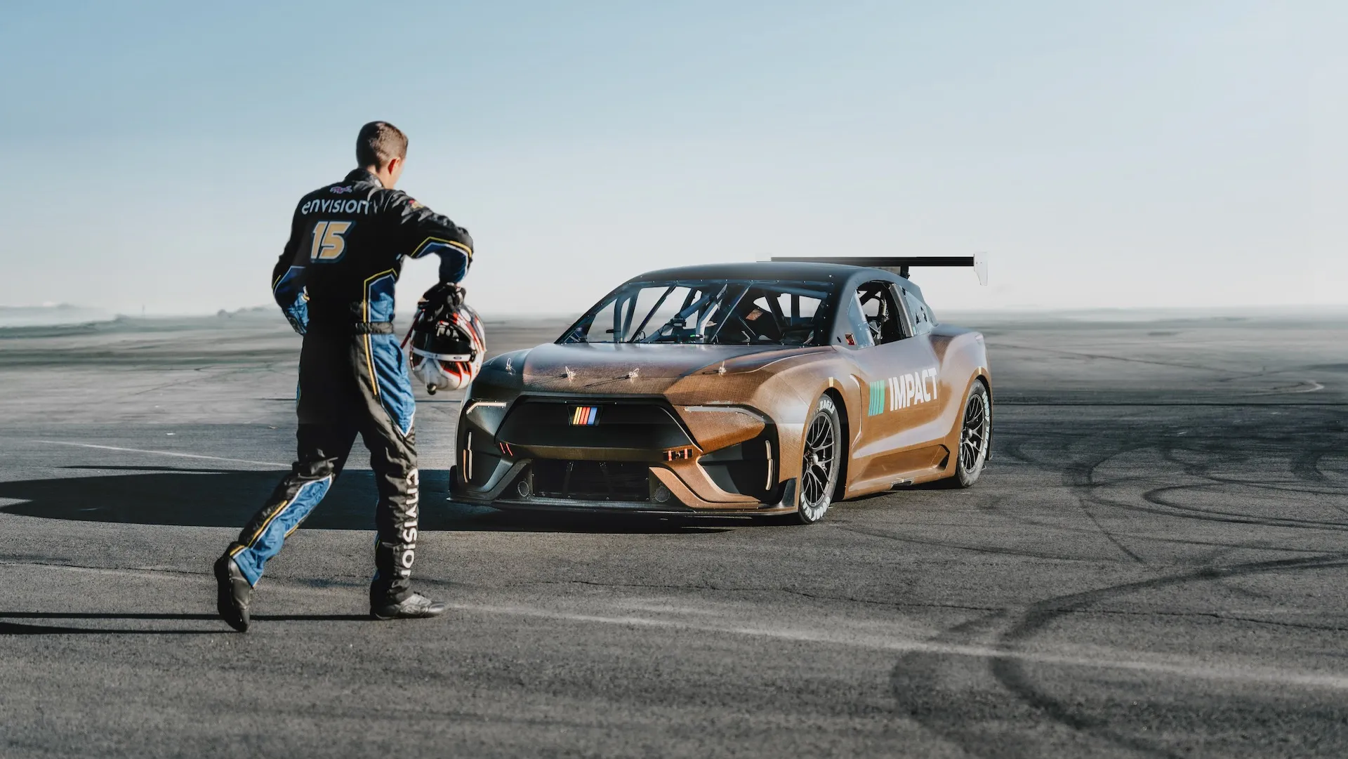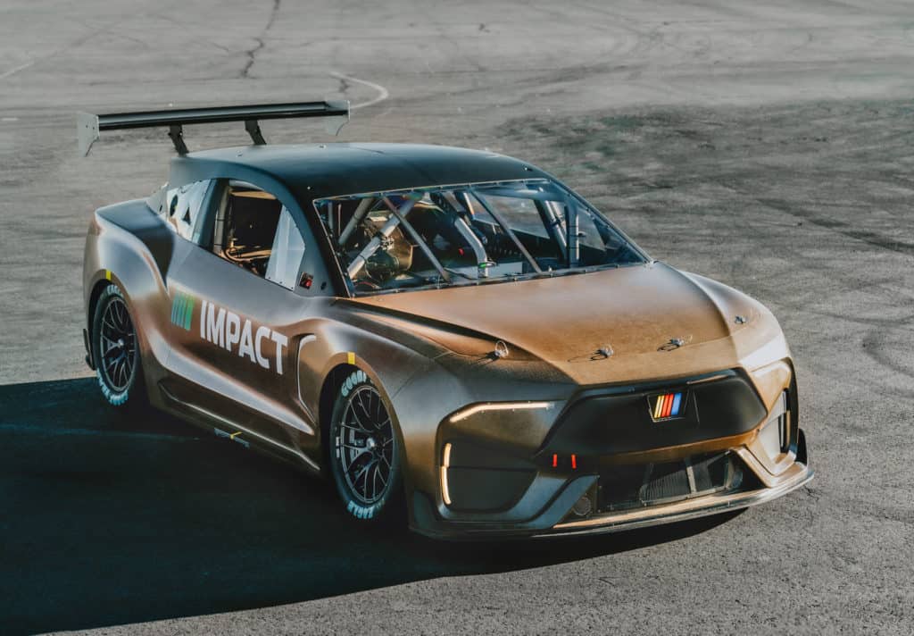 Le prototype, présenté pour la première fois en juillet, est construit sur un châssis Next Gen modifié et intègre des composants des voitures actuelles de la NASCAR Cup Series, notamment la direction, la suspension, les roues et les freins. Le groupe motopropulseur est alimenté par une batterie de 78 kWh et trois moteurs électriques, délivrant une puissance combinée de 1 341 chevaux.