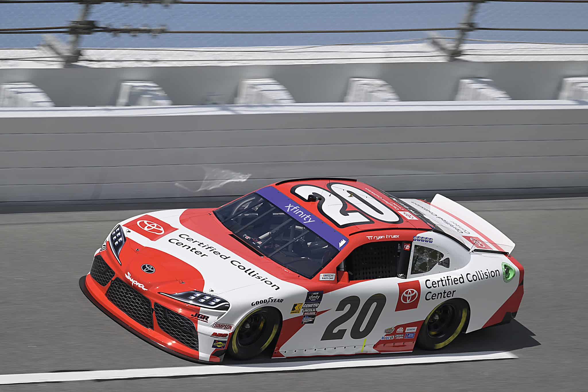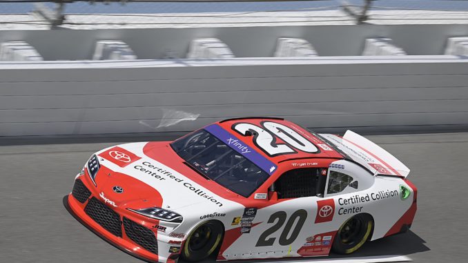 Ryan Truex et Chandler Smith offre un doublé à la Joe Gibbs Racing sur le Daytona International Speedway en NASCAR XFINITY Series. Alors que le peloton passe sous le drapeau blanc indiquant lentrée dans le dernier tour, Parker Kligerman sort AJ Allmendinger qui va fracasser sa Chevrolet dnas le mur extérieur. Les officiels sortent le drapeau jaune pour la septième fois de la course, ce qui gèle les positions.