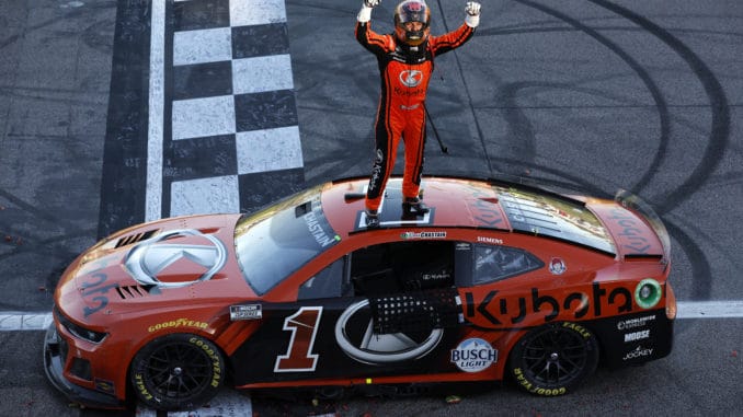 Dans le Midwest, pour la première fois de la saison, Ross Chastain a pu fracasser une pastèque au sol afin de célébrer sa victoire, celui qui se présente comme le perturbateur du peloton pendant ses playoffs entend bien jouer sa carte jusqu’au bout.