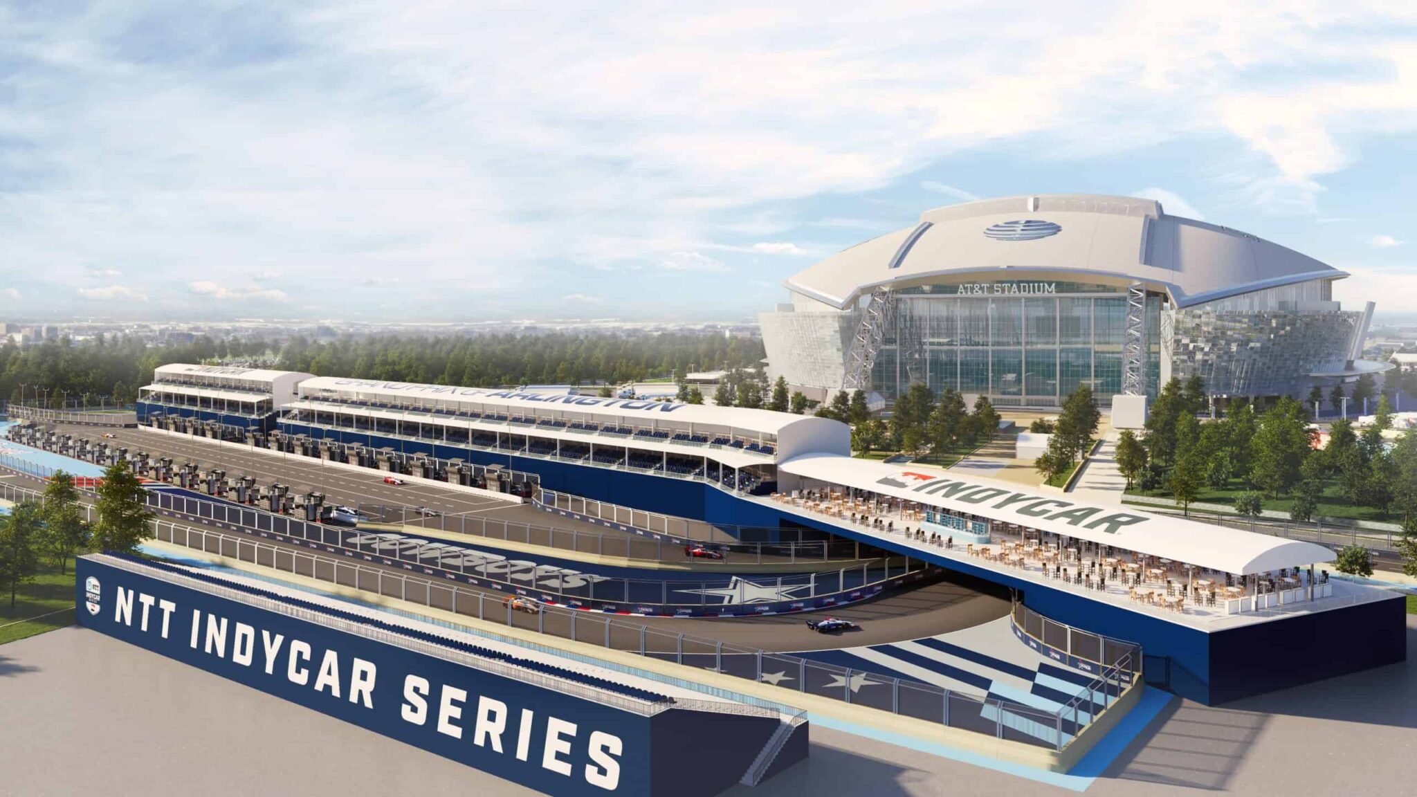 L’INDYCAR a confirmé la tenue d’une course dans les rues d’Arlington, dans la banlieue ouest de Dallas au Texas, en mars 2026. Le circuit de 2,73 miles comportera quatorze virages, cinq à gauche et neuf à droites. La voie des stands sera dédoublée, comme c’est le cas dans les rues de Detroit.