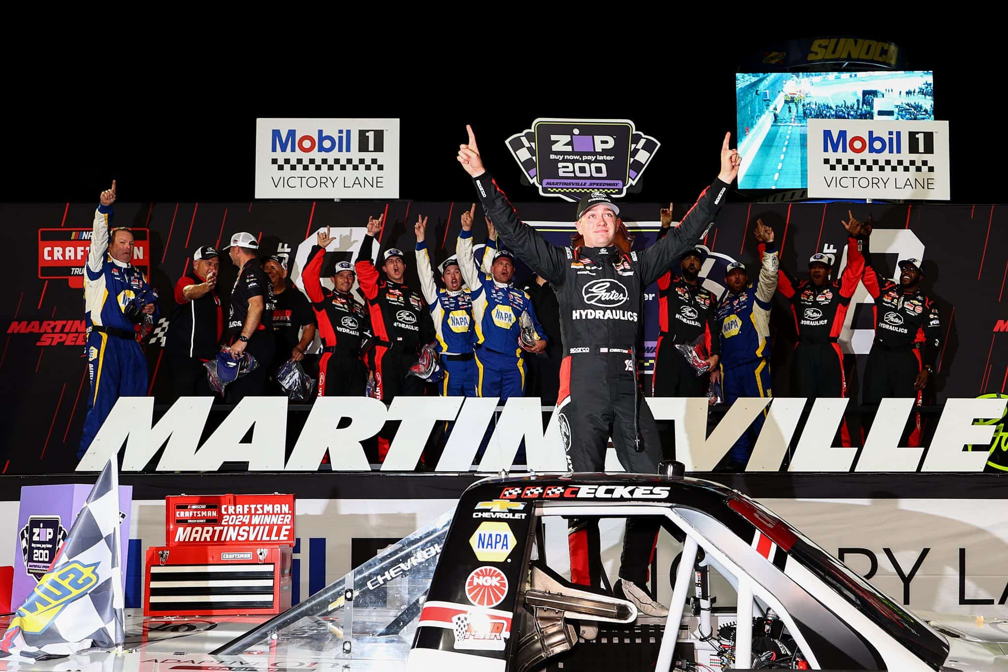 Vendredi soir, Christian Eckes a dominé de bout en bout les Zip Buy Now, Pay Later 200 sur le circuit de Martinsville, décrochant sa place pour la course finale de la NASCAR Craftsman Truck Series. Cette course intense et pleine de rebondissements a été marquée par des manœuvres agressives de la part d’Eckes, qui n’a pas hésité à utiliser son pare-chocs pour se défendre face aux pilotes concurrents équipés de pneus plus frais, notamment Taylor Gray et Ben Rhodes. Avec cette victoire, il rejoint Corey Heim, Ty Majeski et Grant Enfinger dans le top quatre qui se disputera le titre à Phoenix.