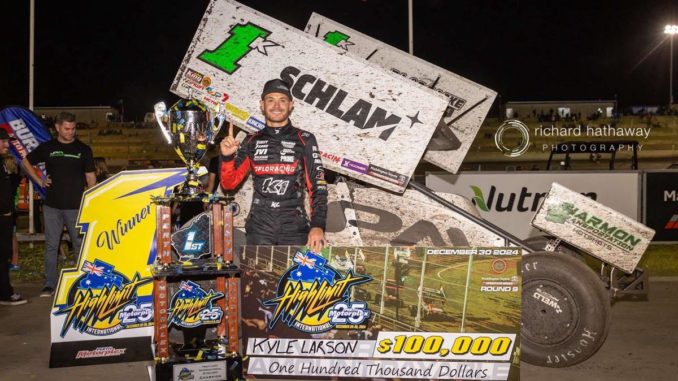 Larson a remporté le plus gros prix de l’histoire des courses de sprint car australiennes : 100 000 $ AUD. Cette somme récompensait sa victoire lors de l’épreuve principale d’un spectacle de trois jours, marquant la première incursion de High Limit Racing hors des États-Unis.