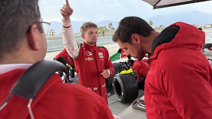 Pour Shwartzman, qui n’avait qu’une journée de roulage en INDYCAR avant cet essai, l’apprentissage était intense. L’ancien pensionnaire de PREMA en Formule 3 et Formule 2 FIA, aujourd’hui pilote de réserve pour Ferrari en F1, s’est adapté rapidement en couvrant 54 tours.