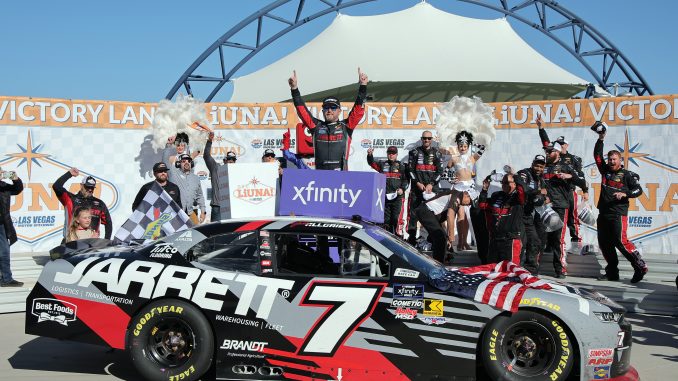 Hormis une neutralisation dans le premier tour de la course, la cinquième épreuve de la saison n’a été interrompue qu’à la fin des deux premiers segments. C’est donc un drapeau vert de 102 tours qui a conclu cette course et Justin Allgaier s’est imposé pour la vingt-sixième fois de sa carrière, la première fois à Las Vegas après quatre deuxièmes places.