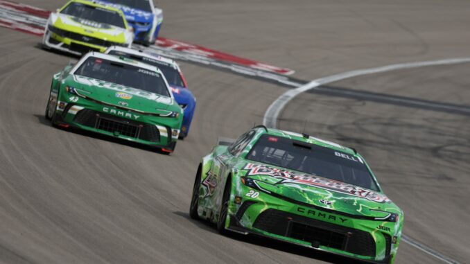 Sur le Las Vegas Motor Speedway, Christopher Bell part de son stand avec sa roue arrière gauche mal serrée. Plutôt que de perdre la roue en piste et d’écoper de deux tours de pénalité, en plus d’un possible endommagement de la voiture, Adam Stevens, le chef d’équipe de Christopher Bell, prend la décision de faire arrêter son pilote chez Chase Briscoe, coéquipier au sein de la Joe Gibbs Racing. Le règlement est clair dans ce cas, il s’agit d’un arrêt en dehors de son emplacement, une infraction sanctionnée sous drapeau jaune, par une relégation à l’arrière du peloton.