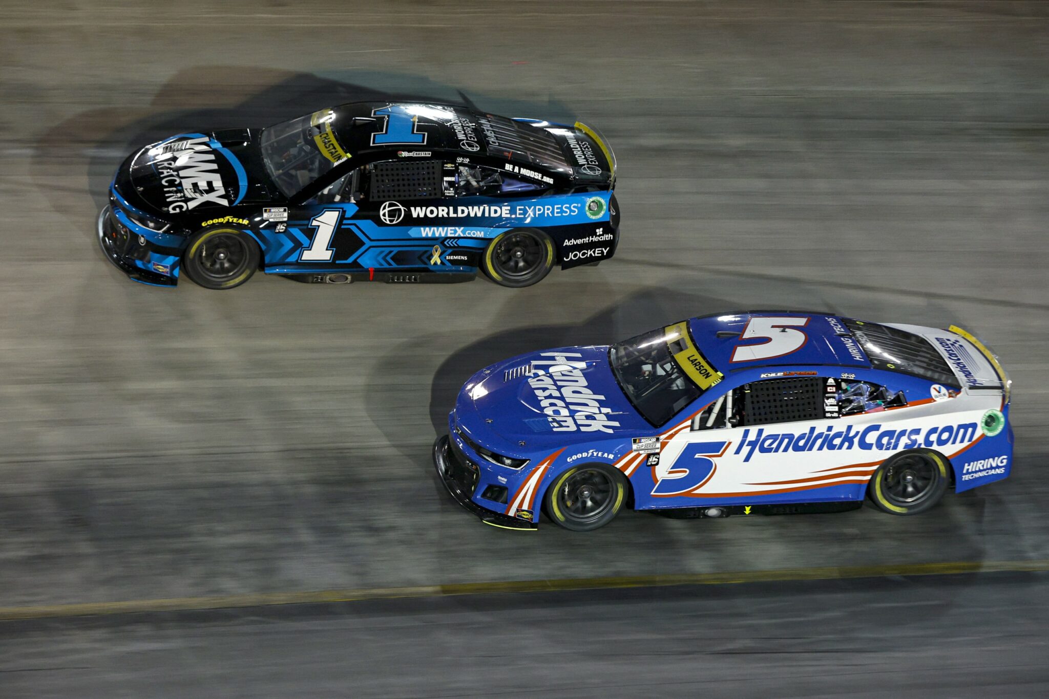 Larson s’est déjà approché de cet exploit cette saison à Homestead-Miami, avec les victoires en Truck et en Cup, manquant de peu le triplé suite à un restart tardif en Xfinity.
