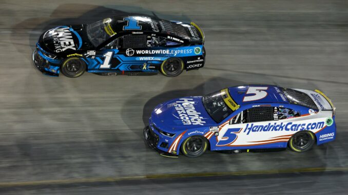Larson s’est déjà approché de cet exploit cette saison à Homestead-Miami, avec les victoires en Truck et en Cup, manquant de peu le triplé suite à un restart tardif en Xfinity.