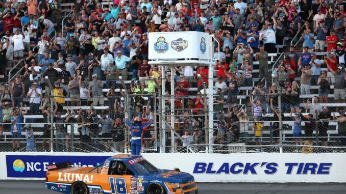 Il aura fallu attendre près de cinq ans, mais Tyler Ankrum a enfin retrouvé le chemin de la Victory Lane, remportant vendredi le Black’s Tire 200 sur le Rockingham Speedway, théâtre du retour de la NASCAR CRAFTSMAN Truck Series après onze ans d’absence.
