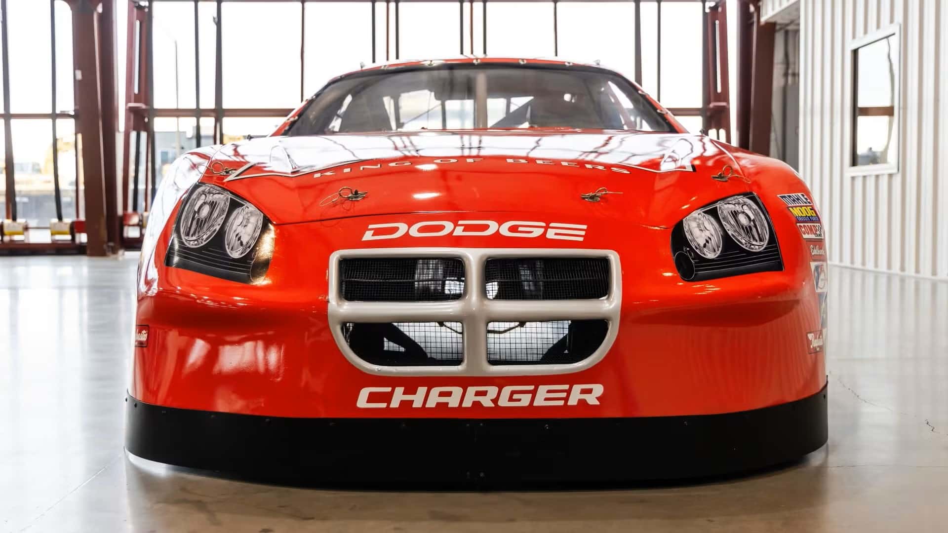 Elle trône fièrement sur une pelouse comme une sculpture grandeur nature. Cette Dodge Intrepid NASCAR de 2004, habillée d’une livrée expérimentale évoquant la future Charger, sera mise en vente aux enchères lors de la Mecum Indy le mois prochain. Vendue en tant que châssis roulant, sans moteur ni boîte de vitesses, elle offre à son futur propriétaire un morceau de l’histoire récente de la NASCAR, à restaurer ou à exposer.