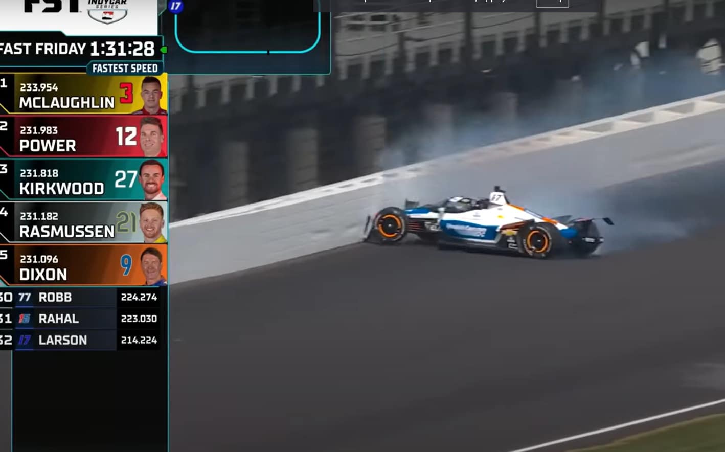 Ce deuxième incident en deux roulages à Indy vient rappeler à quel point le défi de l’Indianapolis 500 est redoutable, même pour un pilote du calibre de Kyle Larson. Inscrit dans un double programme ambitieux Indy 500 / Coca-Cola 600, il poursuit sa préparation dans l’objectif de devenir le cinquième pilote de l’histoire à tenter le « Double Duty » le dimanche 26 mai.