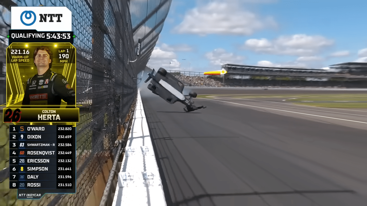 En seulement 24 heures, l’Indianapolis Motor Speedway a été le théâtre de quatre crashs majeurs, et celui de Colton Herta ce samedi midi s’impose comme le plus spectaculaire jusqu’à présent.