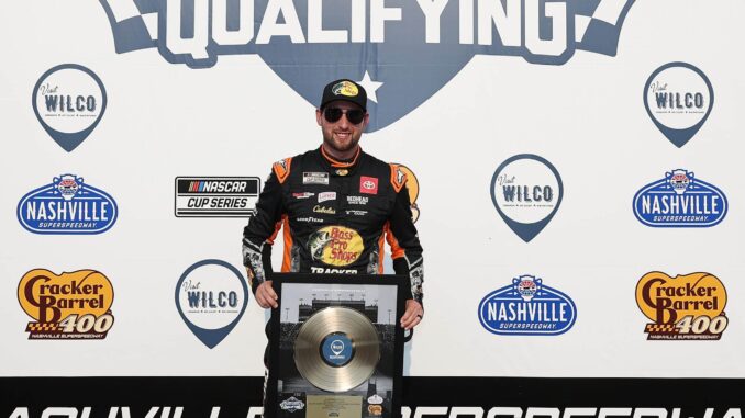Pour la seconde semaine de suite Chase Briscoe décroche la pole position en NASCAR Cup Series. La première ligne sera intégralement Joe Gibbs Racing, puisque Denny Hamlin réalisé le deuxième chrono. Ce dernier pourrait manquer tout ou partie des Cracker Barrel 400 sur le Nashville Superspeedway, puisque sa fiancé est enceinte, l’accouchement étant imminent.