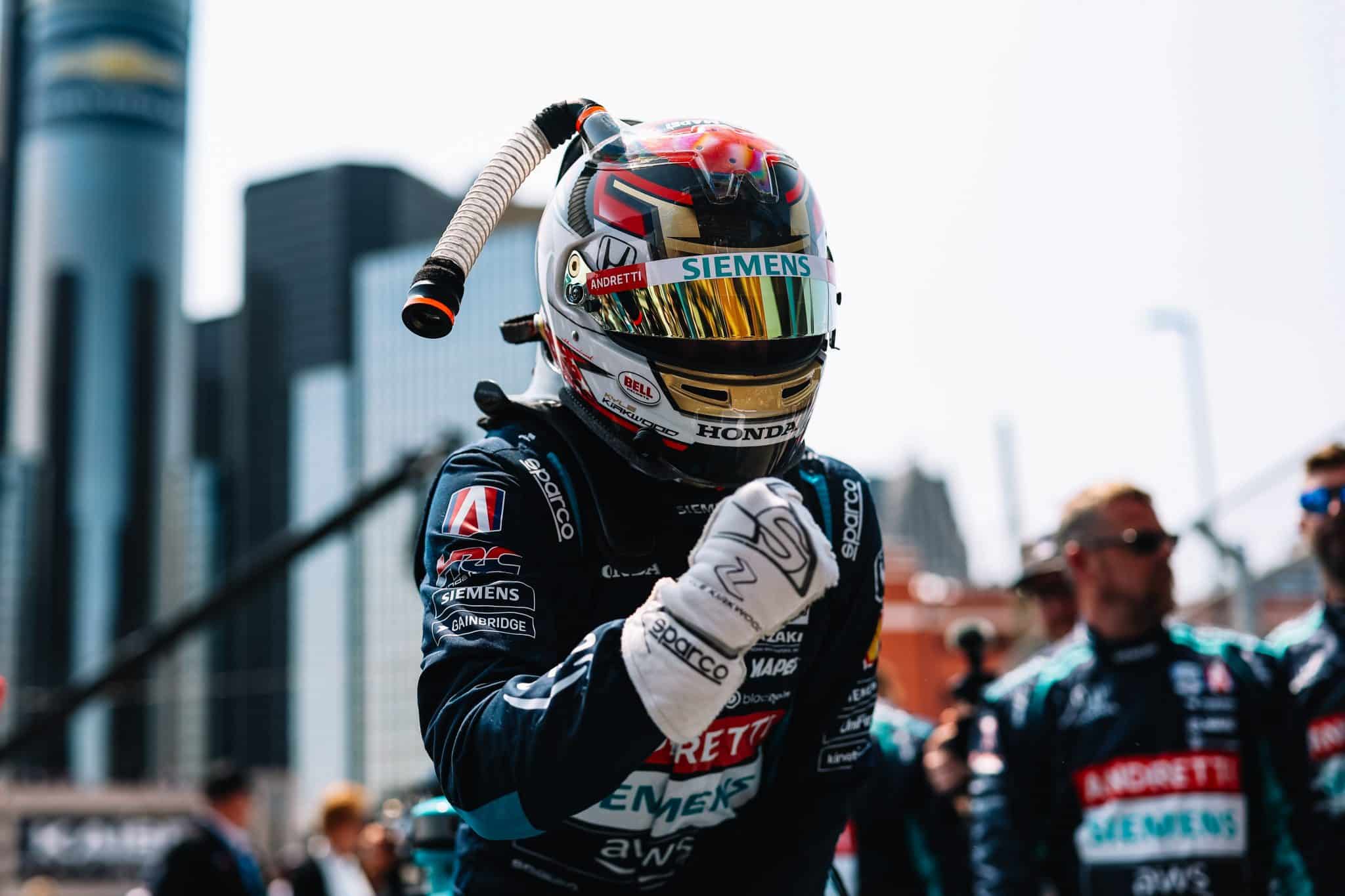 Malgré un aileron avant endommagé à la suite d’un contact avec un rival, Kyle Kirkwood a réussi à s’imposer ce dimanche dans le rues de Detroit. Le pilote Andretti Global prend la deuxième place du classement des pilotes à 90 points du leader.