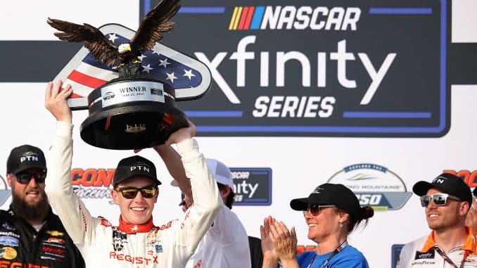 Dans une journée aux stratégies variées et aux relances dramatiques pour les pilotes de tête, le rookie de la JR Motorsports Connor Zilisch décroche sa première victoire sur ovale à l’occasion des Explore the Pocono Mountains 250 sur le Pocono Raceway. Il s’agit de la seconde victoire de la saison de Connor Zilisch après celle acquise au Circuit of the Americas d’Austin en Texas.