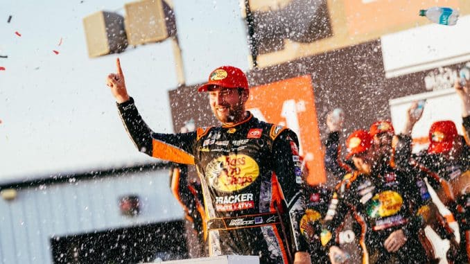 Chase Briscoe et son équipe se sont faits peur lors de l’ultime arrêt de la course en ne mettant pas tout le carburant prévu, mais le pilote de la Toyota Camry XSE n°19 de la Joe Gibbs Racing a réussi à suffisamment économiser de carburant pour décrocher sa première victoire de la saison. Il devance son coéquipier Denny Hamlin, qui n’a jamais été en mesure de porter une attaque dans les derniers tours de la course.