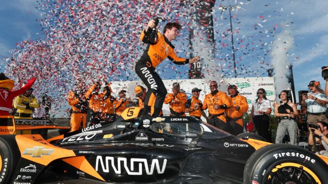 En réalité, c’était ce dernier qui était bien parti pour s’imposer : le pilote Penske a mené tous les tours de la course jusqu’au dernier arrêt, le seul de la course sous drapeau vert. Subissant la dégradation de ses pneumatiques, il a été le premier des pilotes de tête à passer par la voie des stands. Malheureusement pour lui, Pato O’Ward s’est arrêté au tour suivant et a pu réaliser l’overcut, bien aidé par une petite erreur lors du pit-stop de la Dallara n°2. Le pilote McLaren a ensuite pu conserver son avantage, malgré deux neutralisations supplémentaires dont un drapeau rouge.